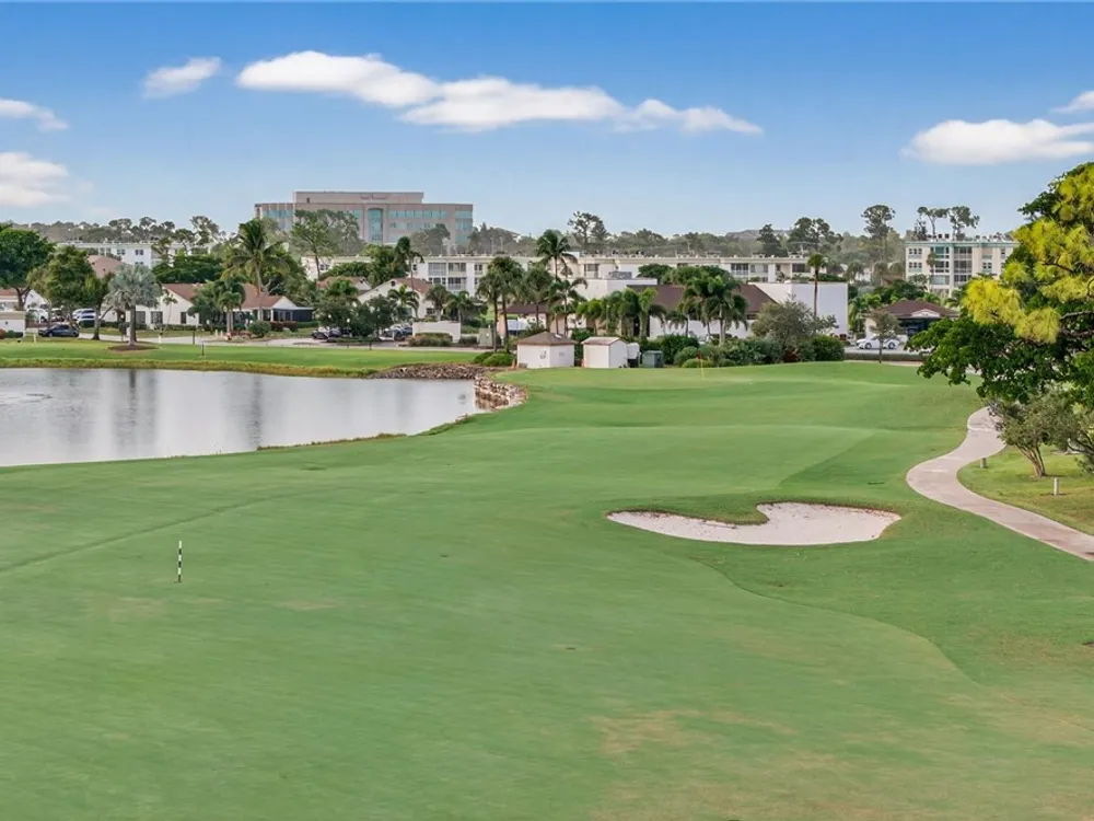 INTERIOR PHOTOS COMING SOON - Welcome to a well-kept, move-in-ready home in a vibrant 55+ bundled-golf community—where golf comes with NO green fees and NO trail fees. This residence showcases one of the community’s most desirable vistas, capturing both the shimmering lake and manicured fairways. Inside, a spacious primary suite features an ensuite full bath, complemented by a separate guest bath for easy entertaining. In the cooler months, slide open the IMPACT glass doors and let the Florida breezes flow; the lanai is enclosed with impact windows, creating extra flexible living space, while clear shutters protect the front of the home. Practical upgrades include a 2022 A/C and a transferable service contract for peace of mind. The condo fee covers cable, internet, water, sewer, trash removal, and lawn maintenance—owner pays electric—keeping monthly budgeting simple. Resort-style amenities abound: an executive 18-hole golf course, 6 tennis courts, pickleball, shuffleboard, an auditorium for dinners and dancing, on-site “Tee Room” restaurant, a robust rec department, monthly event calendar, and 24/7 guarded gate. All in a prime location close to the airport, top restaurants, shopping, and plentiful local entertainment. Great price to personalize with your own finishing touches—come see why this is such a wonderful community.