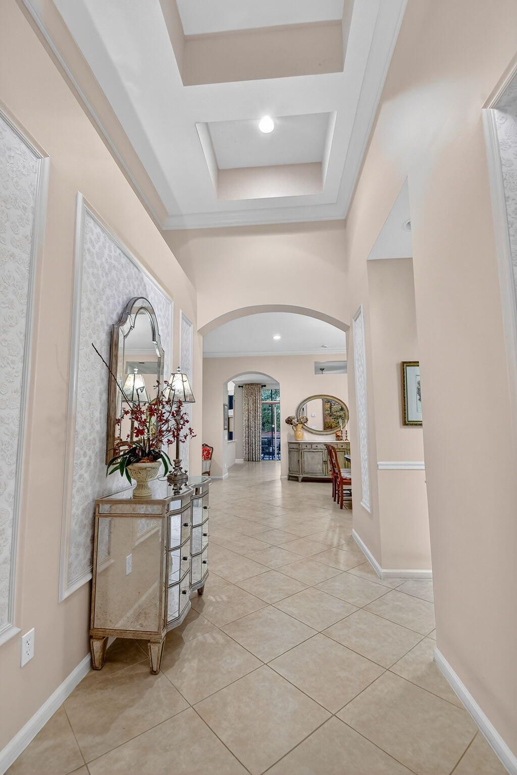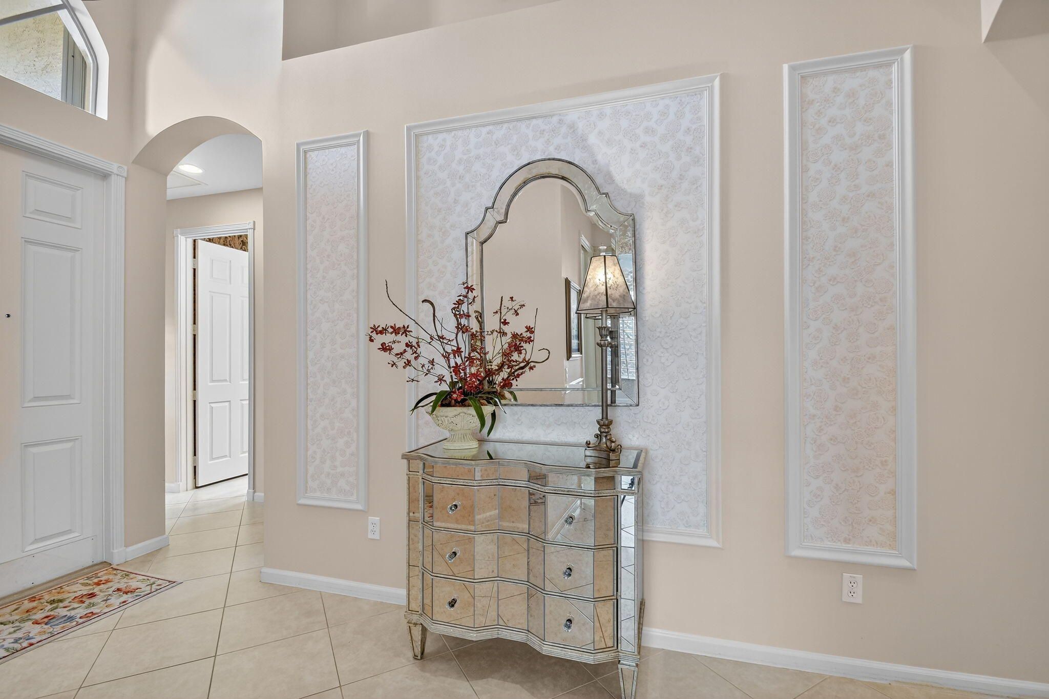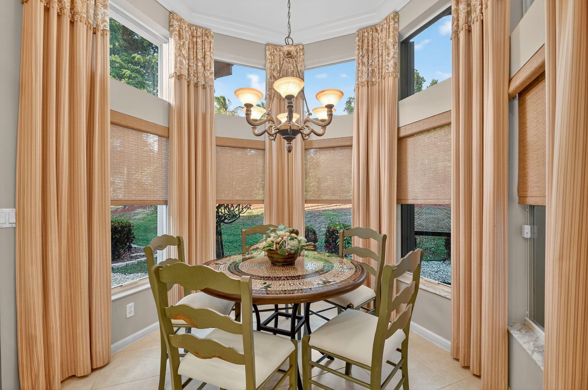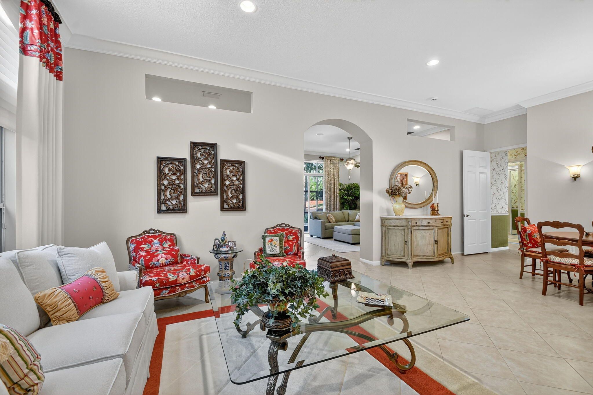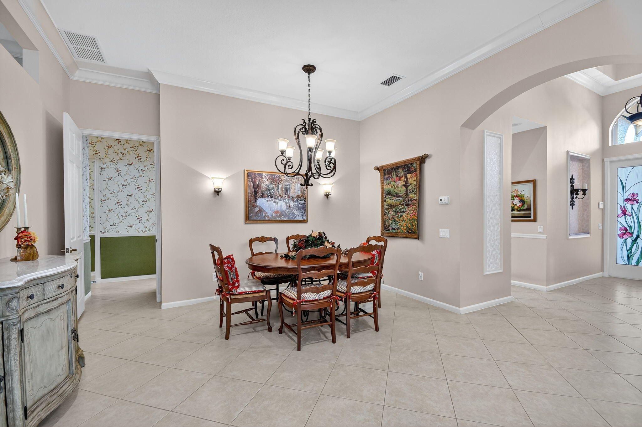 SELLER DROPPED $50,000 FOR QUICK SALE! Stunning home meticulously kept offers Designer Custom Upgrades Galore! Situated on highly desired N/S exposure lot. One of a kind. Enter this stunning home w/ramp entry to find the hallway is customized w/designer ceiling plus custom stained glass insert on the sidelight. Gourmet Kitchen is a Chef's Delight boasting upgraded leveled White Quartz Countertop w/full backsplash, 36'' wood cabinets, SS Upgraded GE Profile appliance package w/Glass Top Convection Stove, Large SS sink w/filtered water, glass cabinets, bump-ups, cabinet moldings, cook desk & wine rack. Home complete w/Upgraded Accordion Hurricane Shutters, Crown moldings, A/C w/Upgraded 2x yr filter, upgraded 75 gallon hot water heater. Seller is the Original owner & worked with an Interior Designer to make this home very special. True 3BR with closets & doors in each bedroom plus a convertible 4th bedroom. The Primary bedroom has been beautifully customized & offers a unique entrance to the primary bathroom & Fourth convertible bedroom which extends the space of the Primary bedroom. Can be used as a dressing room, extra closet, office, gym, sitting area or art room. This room offers wainscoting on the walls & a large glass block window brining in natural light. Custom drapery throughout w/black out blinds in primary bedroom. Primary Closets have been upgraded. Home offers tint on some windows, upgraded security system w/motion detectors, neutral tile on diagonal, crown moldings, upgraded and newer carpeting in the bedrooms, pocket doors in many rooms, large laundry room with washer & dryer, Splash Sink & cabinets for extra storage. Second full bath is upgraded to walk in shower w/Custom Framed Mirror & upgraded bath lights, tile to ceiling & more. Seller added many more switches, outlets & recessed lighting. Powder room is complete with pedestal sink & custom wall paper, upgraded light fixture. Beautifully maintained landscape surrounds home and seller added additional row of tall flowering bushes on the berm for extra privacy. Private outdoor patio covered and screened & additional pavers beyond. Pull down steps in attic & so much more. Won't last long. Come live the country club lifestyle without paying country club fees. Newly renovated clubhouse for you to enjoy. Endless clubs & shows in this Highly Sought after Valencia Pointe 55+ Community. You will find Resort Style Amenities, Tennis Courts, Pickleball, Convenient Cafe, Game & Card Rooms, Shows & Clubs for all, Billiards, Fitness room, Fitness Classes, Walking trails, Biking Trails & so much More! Pet Friendly.