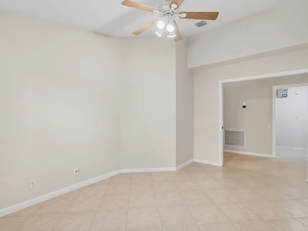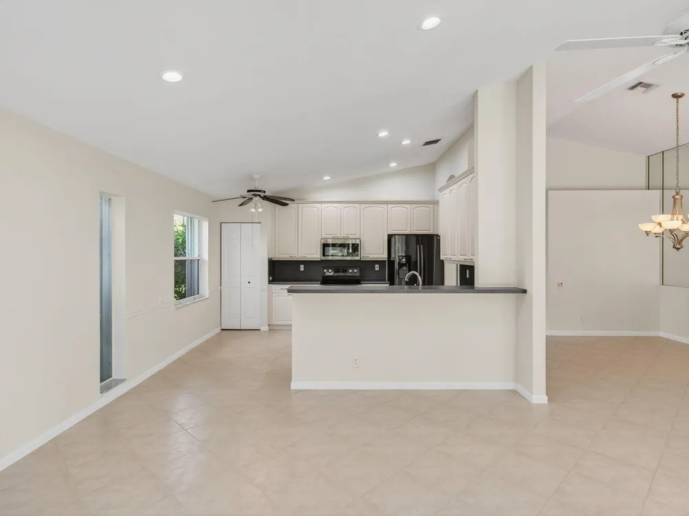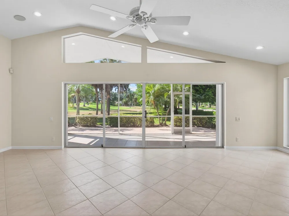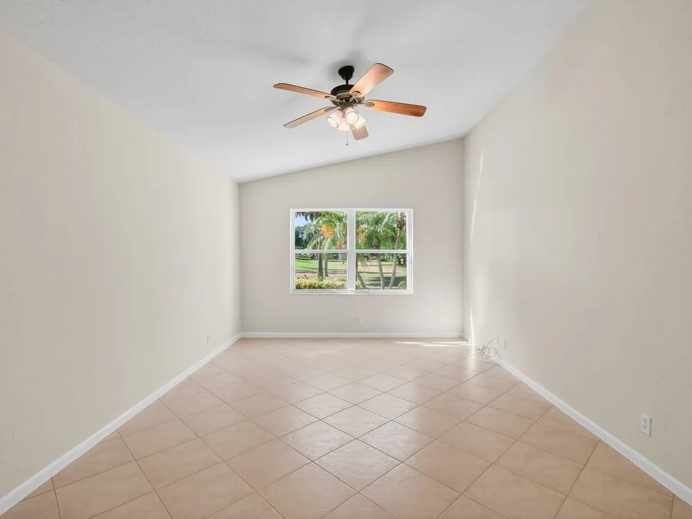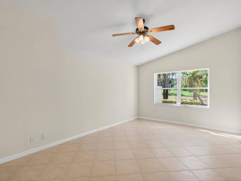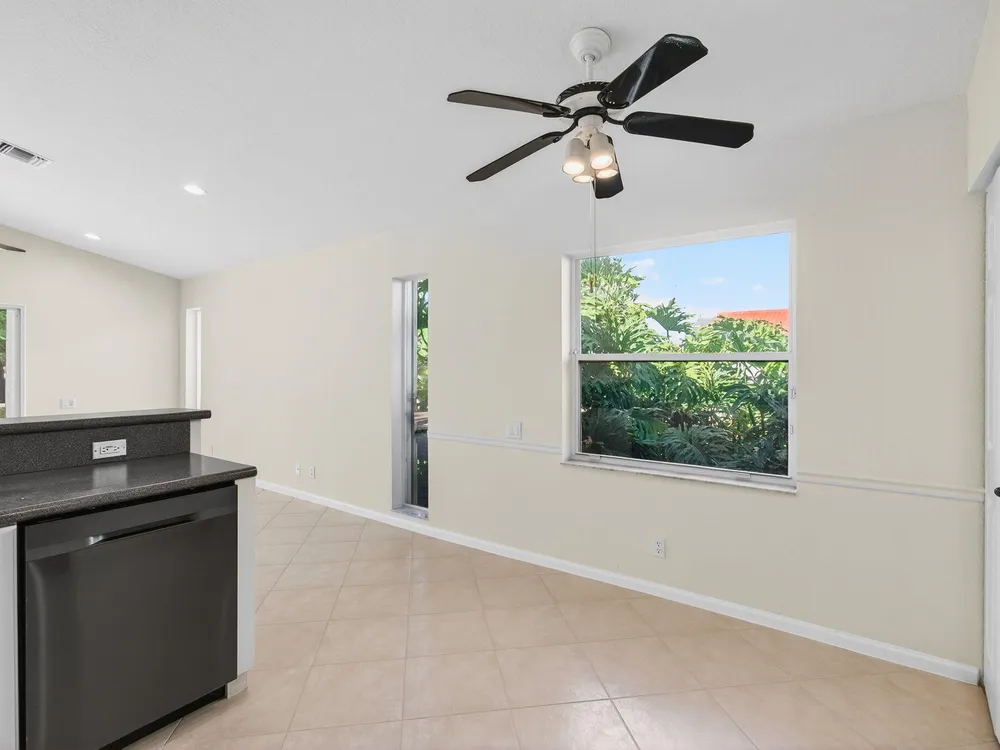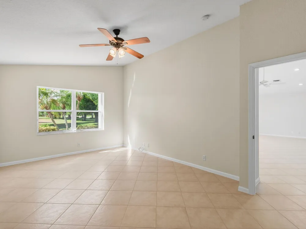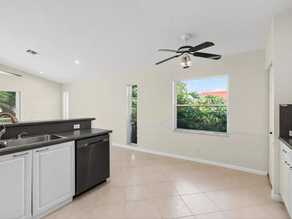 Wake up to gorgeous golf course views in this 2-bedroom plus den Balmoral floor plan home in the desirable Cascades community of Boynton Beach. This corner home offers over 1,800 sq. ft. of open living space with tile flooring throughout and a bright, airy layout that seamlessly connects the living, dining, and kitchen areas.The kitchen features black stainless steel appliances and an eat-in area that overlooks the golf course, making it the perfect spot to enjoy your morning coffee or host casual meals with friends. The split bedroom layout ensures privacy, with the second bedroom and full bath located at the front of the home. The primary suite includes a walk-in closet, double sinks, and a separate tub and shower, creating a serene retreat.