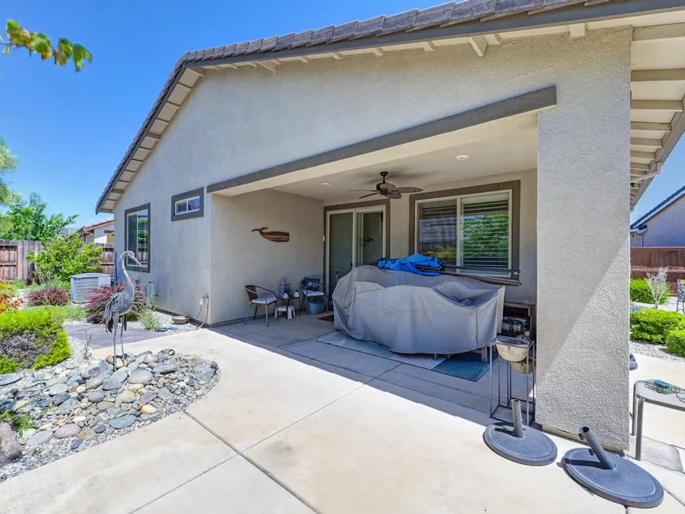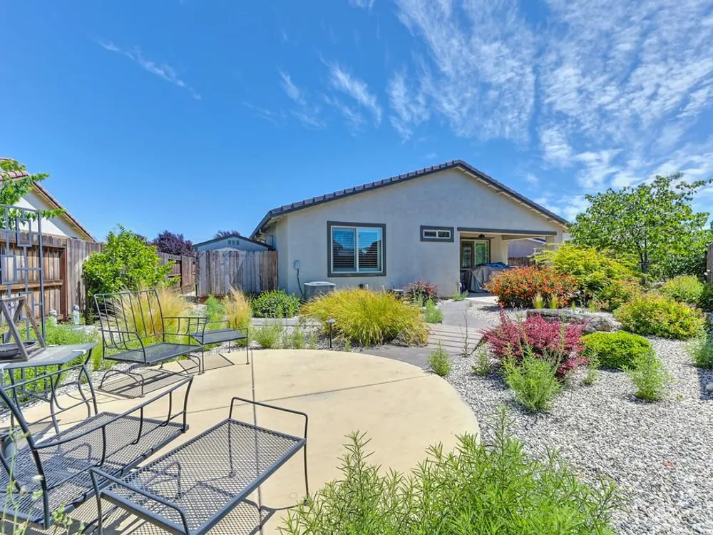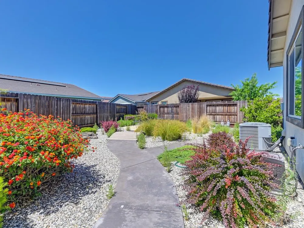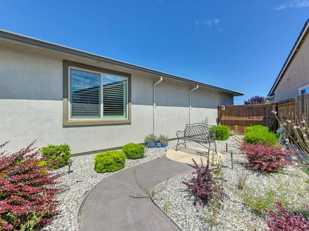 Discover a remarkable 55+ home in the Heritage Vineyard Creek community, featuring an expansive lot. This serene gated haven offers an array of amenities such as a clubhouse, fitness gym, BBQ area, spa, swimming pool, pickle-ball and bocce ball courts, fire-pit, and a community garden. The home boasts 1,743 square feet with 2 bedrooms and 2 bathrooms. The open-concept kitchen, dining, and living areas are perfect for entertaining. Enjoy a sprawling, private backyard adorned with a lush garden and a covered patio. Conveniently located near the freeway, shopping centers, and downtown Sacramento, this property is an ideal retreat.