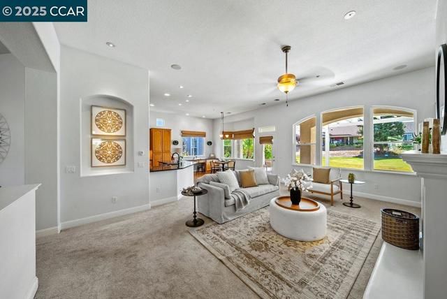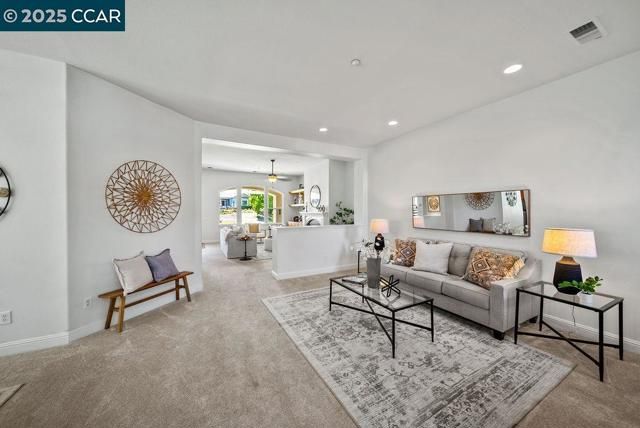 Beautifully maintained and highly sought-after, this Majestic model on the golf course offers the perfect blend of comfort, style, and resort-inspired living in one of Brentwood’s premier 55+ communities. With 2 bedrooms, 2.5 baths, and a versatile office, this gem is ideally situated on the 12th tee, providing a serene and picturesque backdrop. The soaring ceilings and a light-filled, open layout create an inviting atmosphere for both relaxed living and effortless entertaining. The expansive family room flows seamlessly into a dining area and a chef’s kitchen featuring newer quartz countertops, a center island, built-in wine refrigerator, and abundant cabinetry. A dedicated office adds flexibility, ideal for a guest room, den, or creative space. The primary suite is a true retreat with sweeping golf course views, a cozy fireplace, walk-in closet, and spa-like bath with dual vanities, soaking tub, and separate shower. A private guest suite with its own full bath and additional highlights include newer HVAC, water softener, washer and dryer, and a roomy 3-car garage. Outdoors, the landscaped backyard overlooks the fairway perfect for morning coffee or gatherings with friends. Close to the pool, dining and shopping! https://show.tours/742-richardson-dr