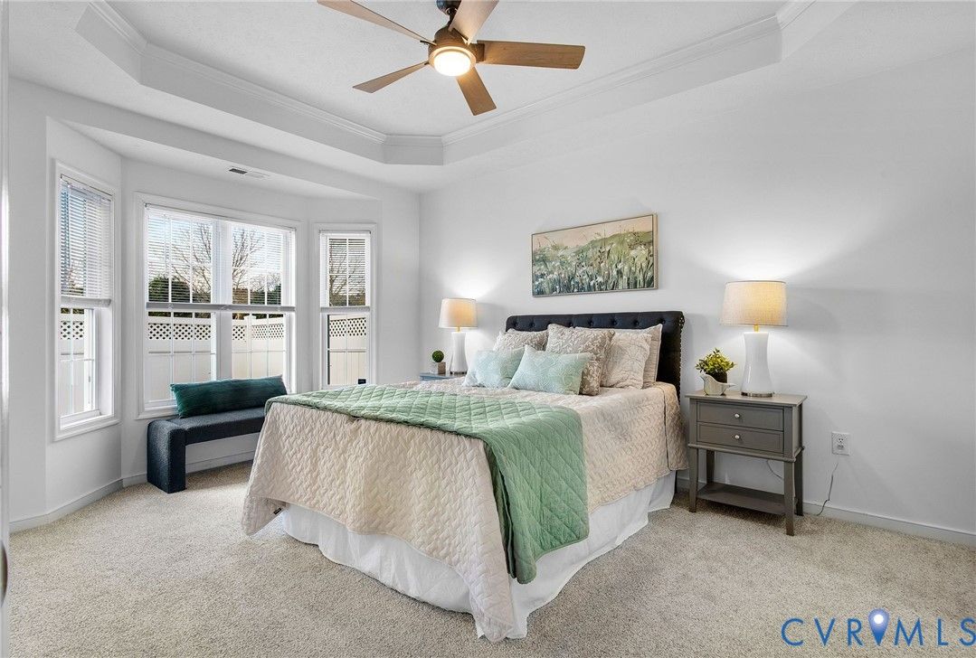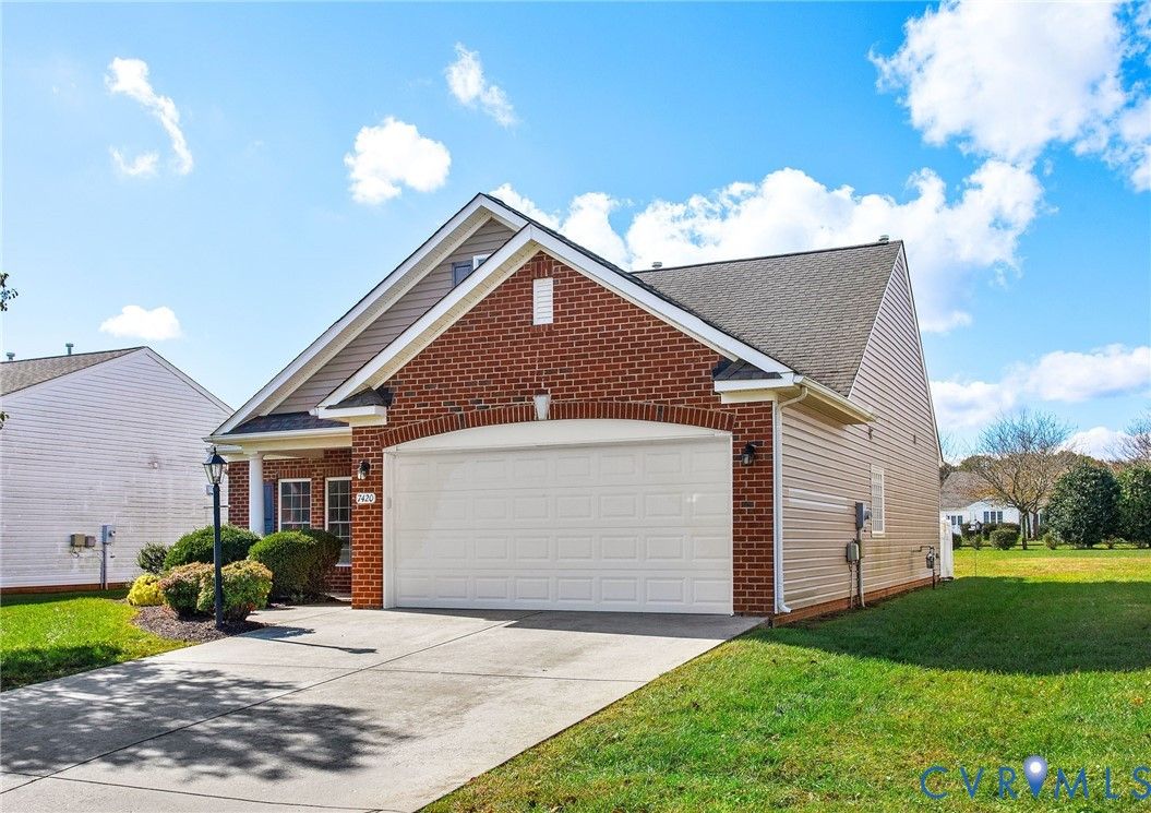 Welcome to this lovely, well-cared for home in pretty Settlers Ridge, a 55+ age-restricted community. You'll love the easy access to downtown Richmond, interstates for an easy commute, and the scenic Virginia Capital Trail. From the lovely covered front porch, you'll step inside to find a bright and open easy-living floor plan. The living room has a gas fireplace and is open to the dining room which has a tray ceiling. The spacious kitchen offers a tremendous amount of cabinet and counter space and you'll spend many hours in the bright morning room which could be used as a sitting room, reading or office area, or another dining area. Just off the morning room, the fenced patio area offers big-sky views and privacy. The primary suite features a bay window, tray ceiling, walk-in closet, and a large bathroom equipped with a shower, soaking tub, and dual vanities. The second bedroom makes a wonderful guest room or office. The convenient attached two-garage offers storage and opens to the utility room with the washer and dryer conveying to the new owner. Settlers Ridge boasts a clubhouse with an exercise room and an indoor pool, enhancing your lifestyle and recreation opportunities. Don’t miss the opportunity to make this beautiful home your own!