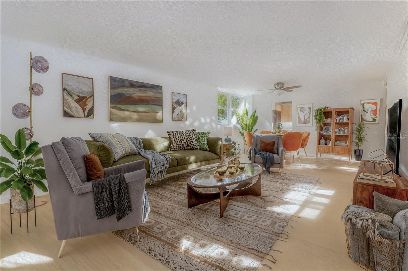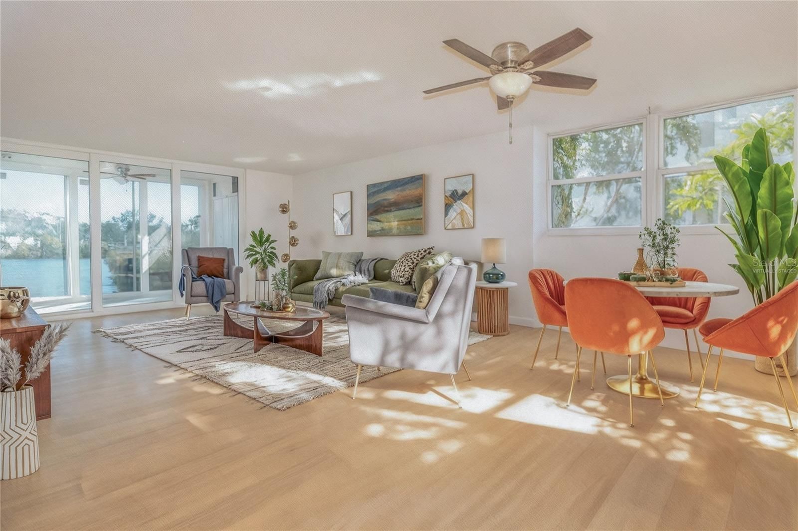 This is the one you've been waiting for! This Picture-Perfect ground floor Waterfront beauty has been completely remodeled from top to bottom. Striking new kitchen with solid wood cabinetry, quartz countertops, new stainless appliances and modern breakfast/coffee bar niche with window to relax and enjoy the views! Fresh paint, hurricane windows, updated bathrooms, new luxury vinyl throughout with ceramic tile in all the wet areas and more are waiting for you to call this home! With a spacious primary suite featuring walk-in closet and en-suite bath, this split bedroom floor plan offers privacy for all; and the wide-open Great room has spectacular views to die for! Let's not forget the fully enclosed Florida room with ceramic tile flooring, hurricane sliders, and extra storage...and of course more breathtaking views. This 55+ guarded community offers everything you could possibly need...pool, tennis, fitness, clubhouse and more - you will not want to leave...but if you do, South Pasadena has it all; and just minutes to some of the most fabulous beaches on the West Coast! This unit is also equipped with an indoor laundry room and a deeded covered parking space - guest spaces are also available at the building. You will not want to miss this one! Door frame to the laundry has been on back order, but will be installed before closing.