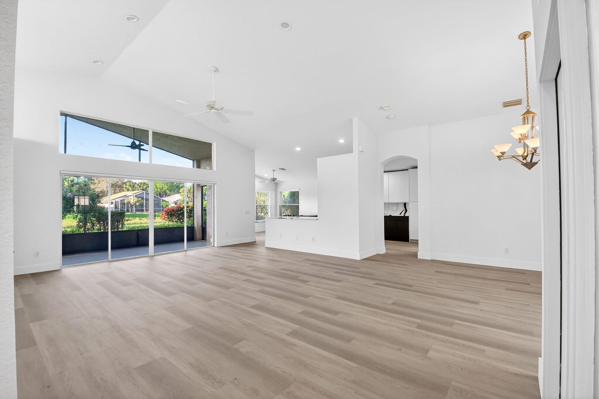 Welcome to the beautifully renovated home you've been waiting for! This stunning Barcelona model sits on a gorgeous lakefront lot and offers breathtaking water views. Enjoy the scenery from the screened-in lanai, featuring a new "picture window" screen for unobstructed views. This home is part of the Crown Series, meaning it is not a zero lot line, providing additional space and privacy. The property has undergone an extensive renovation with high-end finishes throughout. The designer kitchen is truly a chef's dream, featuring Cambria quartz countertops, a Samsung oven with induction cooktop, and additional LG appliances. Custom kitchen details and thoughtful upgrades make this space both beautiful and functional. Throughout the home you'll find light gray luxury vinyl flooring, creating a modern and cohesive feel. The home offers three true bedrooms and 2.5 fully renovated bathrooms. The primary suite features a large customized walk-in closet and serene lake views. The primary bathroom, second bathroom, and powder room have all been completely renovated with high-end finishes and premium materials. Major updates include a new roof (2025) and new air conditioning system (2025), providing peace of mind for years to come. Located in the highly desirable community of Valencia Isles, residents enjoy an exceptional lifestyle with resort-style amenities. The community renovation has been completed, and the assessment for the new pickleball courts has already been paid. One-time capital contribution due at closing equals two quarterly HOA payments. This is a rare opportunity to own a move-in-ready home renovated to perfection in one of the area's most sought-after communities.