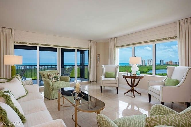 This elegantly maintained home provides the lifestyle everyone dreams about. The 2,555-square-foot, two-bedroom, 2-1/2 bath plus den residence radiates beauty and comfort. The soft finishes will enrapture one in comfort while feasting upon the magnificent vistas of the Gulf of America and Pelican Bay. Experience every sunrise and sunset while enjoying the sounds of songbirds and gentle breezes from two large lanais. Soak in the warmth of the Gulf, sun, and natural beauty of Southwest Florida while walking the berm or riding the tram through the mangroves and scenic waterways to the white sand beach and private clubhouse with outdoor dining. Situated within Pelican Bay, the Marbella is a luxury high-rise with amenities that are second to none. Our helpful staff of 75+ provide concierge, dining including room service, housekeeping, maintenance, assisted care and many more services at your fingertips.