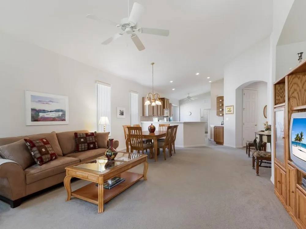 - Eat-in Kitchen, Living/Dining Room, Open Floorplan, Main Level Primary, Solid Surface Counters, Vaulted Ceiling(s)