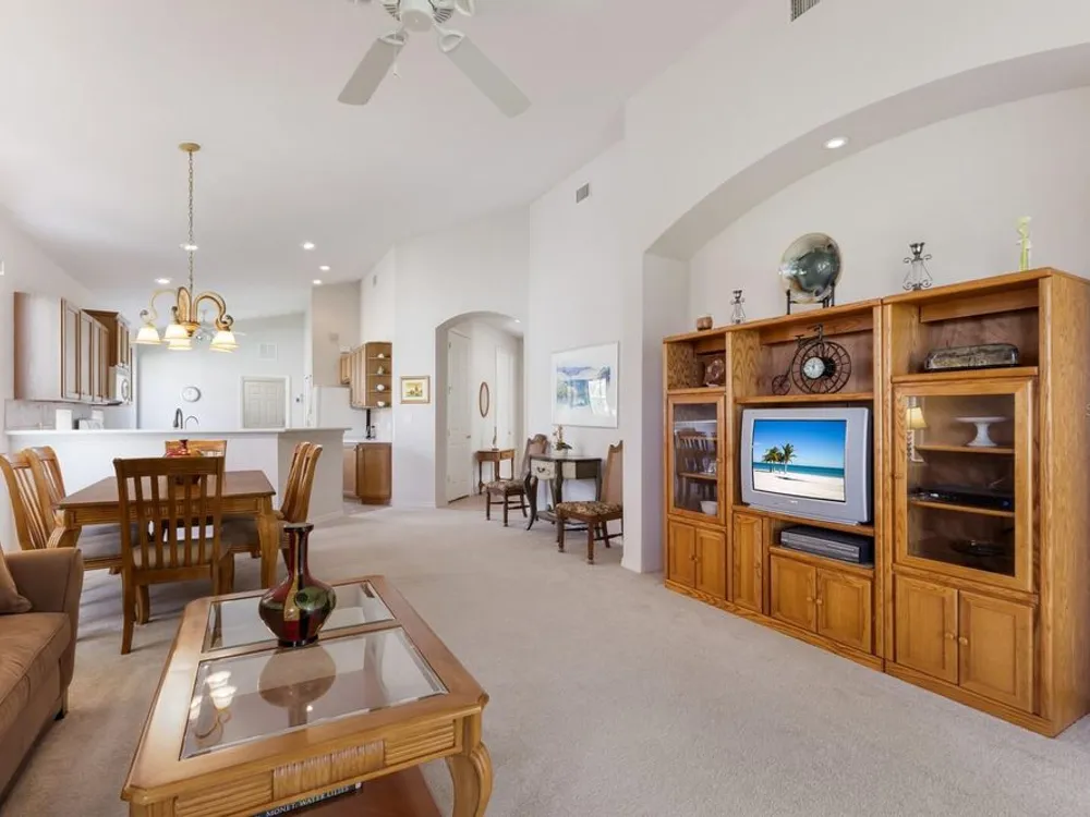 Introducing a beautiful Lee Wetherington built home in Tara Preserve, now on the market for the first time. This perfectly-sized home features a split bedroom floor plan and high vaulted ceilings that create an open and airy feel. The eat-in kitchen offers two pantry closets, while the spacious great room includes a dining area. Lovingly maintained by the original owners since it was built in 2005, this home has only been used for vacations and is in excellent condition. Additional features include a security system, ceiling fans in every room, a water filter under the kitchen sink, an never used microwave, and a charming screened patio. Set on a corner lot, the home offers a generous green space between it and the neighborhood street. Enjoy relaxing on the patio with views of the pond, tropical foliage, and no direct view into the neighboring home or lanai. Tara Preserve is a delightful community with sidewalks, mature landscaping, a clubhouse, pool, tennis, and pickleball facilities. Conveniently located just west of the interstate in Bradenton, golf club memberships are optional in Tara Preserve. Some furniture is negotiable. Fees are $1052.00 annually to Tara Preserve Master Association and $140.00 monthly for yard care. A great value in today’s market. In addition to all the daily amenities nearby, you can enjoy some Old Florida life with a day fishing or kayaking at Jiggs Landing or a great lunch at Linger Lodge, both just minutes away. For those with young ones, Tara Elementary with an A-school rating is just 1.5 miles away. Whatever your lifestyle, this home is ready for you!