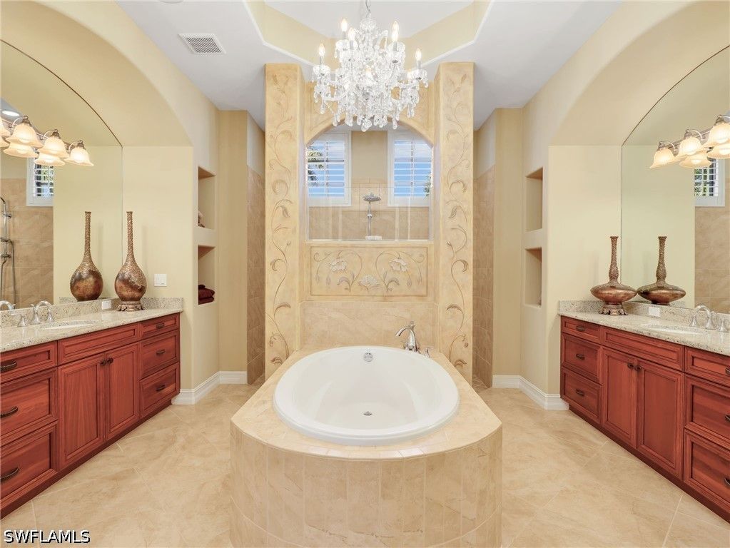 - Bathtub, Tray Ceiling(s), Separate/Formal Dining Room, Family/Dining Room, Living/Dining Room, Pantry, Separate Shower, Wired for Sound, High Speed Internet, Split Bedrooms