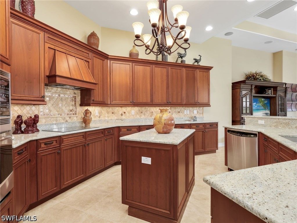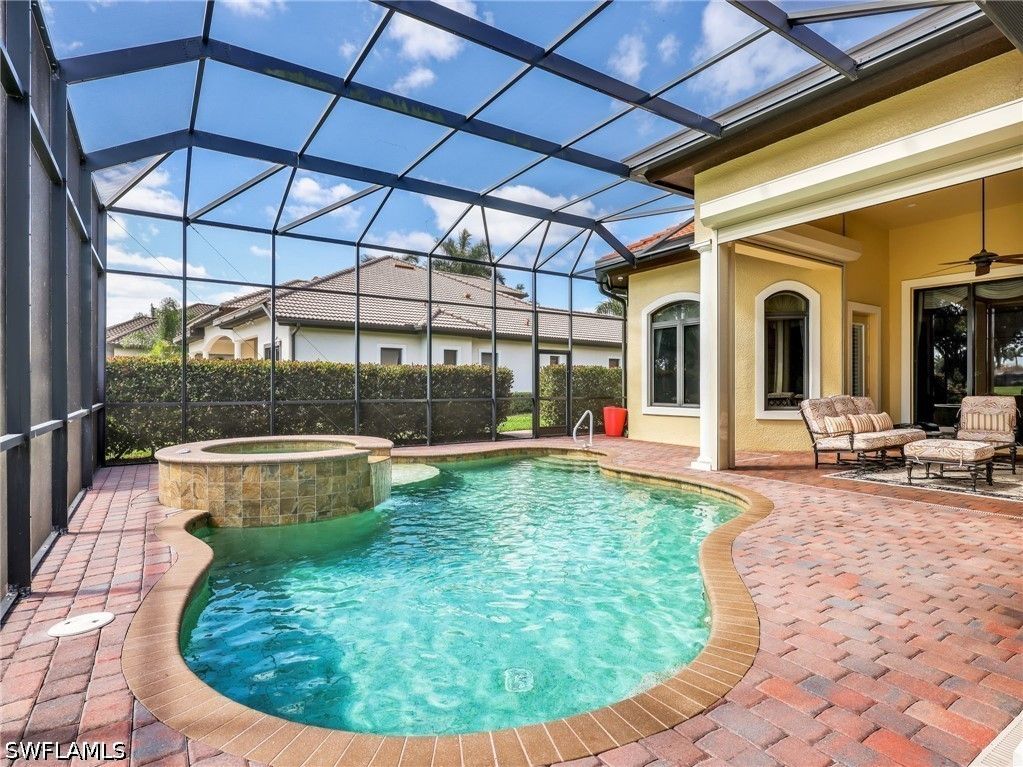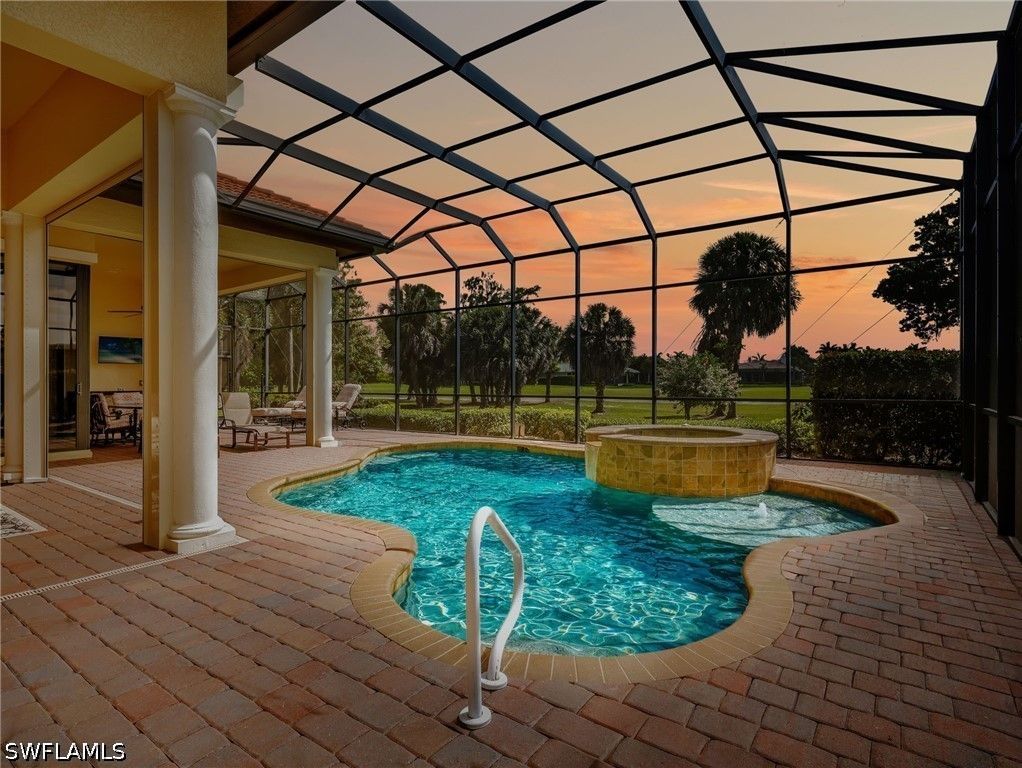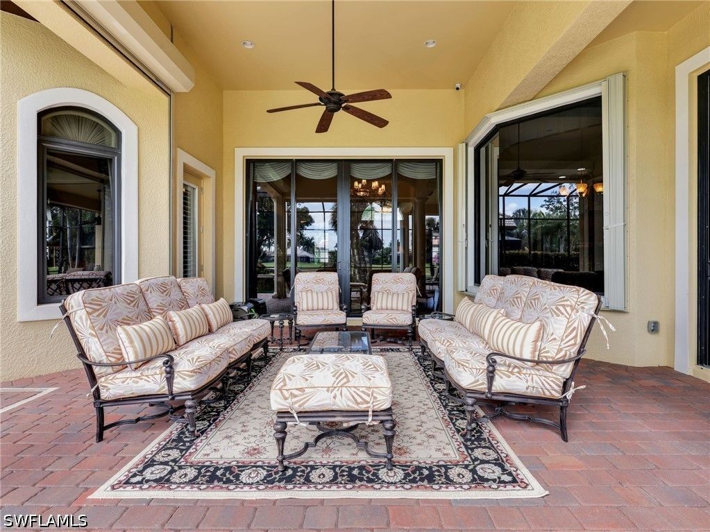 Experience refined Florida living in this turnkey furnished golf course estate, ideally located in the prestigious Classics Plantation Estates at Lely Resort. Spanning an impressive 3,500 square feet under air, this meticulously built Stock home offers 4 bedrooms plus a den, 4.5 bathrooms, and a spacious three-car garage—all set on a premium lot with desirable eastern exposure that fills the interiors with natural light. Built in 2010 and lovingly cared for by the original owners, the home showcases an exceptional level of quality and thoughtful upgrades throughout. Designed for both comfort and peace of mind, it features full storm impact windows and doors, along with electric roll-down shutters enclosing the front entry and expansive lanai. Outdoor living is elevated with a saltwater pool and spa, complemented by a completely updated lanai enclosure (2019), brand-new pavers in driveway and on entire lanai (2024), and a fully equipped summer kitchen with sink, refrigerator, and separate gas grill—perfect for entertaining. A powerful 26,000-watt whole-house generator and 500 gallon propane tank to ensure uninterrupted living, supporting both the generator and the newer pool heater. Inside, the home continues to impress with modern systems and elegant finishes. Two new A/C units (2022), a water heater (2020), Kinetico water softener with charcoal filtration (2021), and a full-home radon mitigation system provide efficiency and comfort. The kitchen is enhanced with an induction cooktop, while the home also includes surround sound throughout the interior and lanai, a Pentair pool control system, and a comprehensive camera security setup. Additional highlights include insulated garage doors, a mini-split A/C in the garage, California Closets, ceramic tile backsplash and bar detailing, and updated furnishings such as new king mattresses, Sony TVs, and stylish lanai furniture—all included for a truly move-in-ready experience. Fresh exterior paint (2018) and countless thoughtful enhancements make this home a rare opportunity to own a luxurious, fully equipped residence in one of the area’s most sought-after communities.