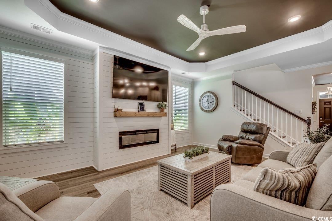 So many upgrades in this gorgeous home in Bridgewater in Little River. This great house shows like a model and offers a nice floor plan including an added large heated and cooled sunroom with EZ breeze windows that acts as den, 4 bedrooms (primary and another bedroom on first floor) plus a study and a loft area, open kitchen, great room, butlers pantry/bar area, large laundry room with cabinets/sink/counter space, lots of storage, and a huge pantry with custom shelving. Upgrades and features include crown molding, custom trim, two beautiful electric fireplaces with shiplap, custom built desk in study, custom paint in every room, upgraded LVP flooring, gorgeous kitchen, large island, high end stainless steel appliances, double oven, tile backsplash, nice fixtures throughout., large primary suite, tray ceilings, double sinks, custom mirrors, tile shower with glass doors, and a large walk in closet, All the upgrades continue outside of this gorgeous home with custom Bahama shutters, curbscaping, tropical landscaping, palm trees, pavers, patio, concrete, outdoor landscape lighting, whole home Generac generator, whole home water filtration system, tankless on demand water heater, 2 1/2 car garage, and an updated alarm system. Great location in the neighborhood, close (but not too close) to the amenities center. Bridgewater has so much to offer including a 5000 square foot clubhouse, state of the art fitness center, resort style pool surrounded by cabanas, huge open area perfect for community events, pickleball court, kayak launch, outdoor grills and cooking area, large and small dog park, and a playground. All this and just a short distance to the Cherry Grove section of North Myrtle Beach.