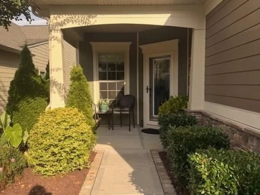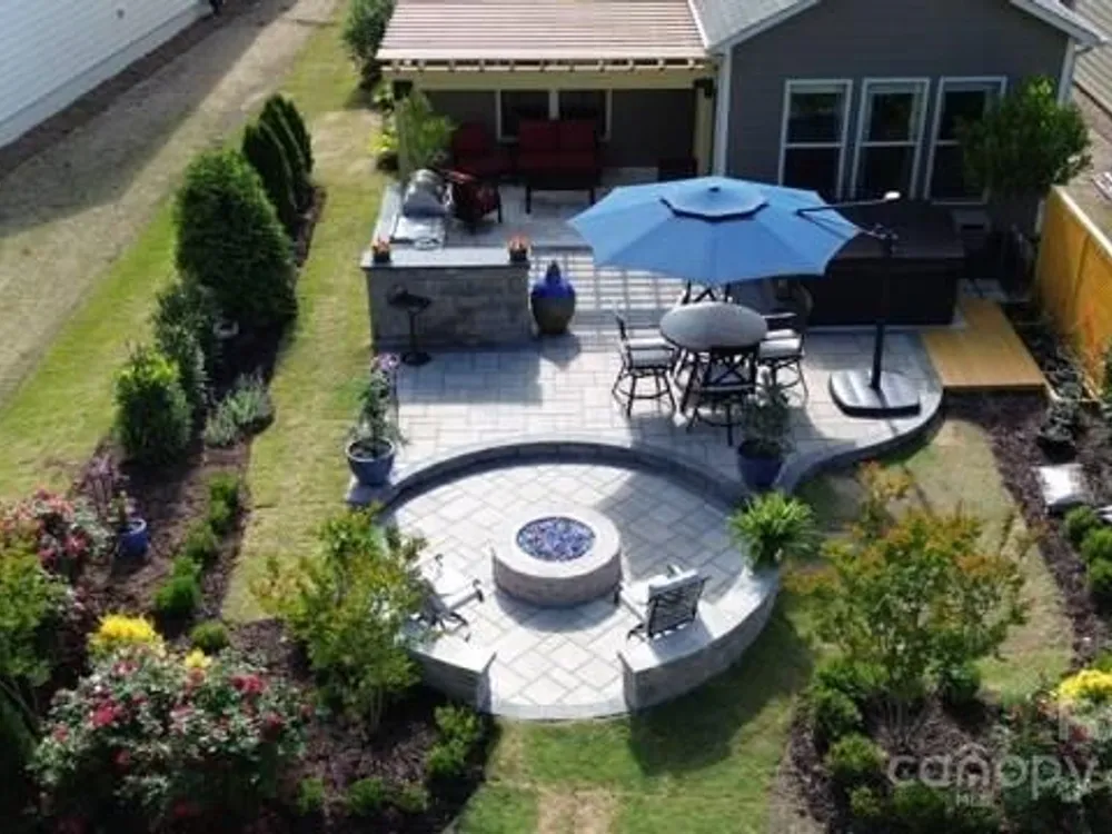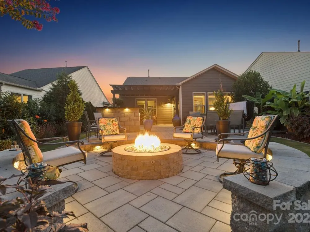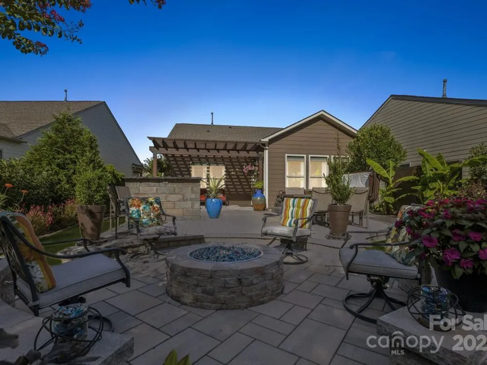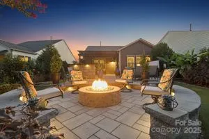 Welcome Home! This beautifully maintained 2-bedroom, 2-bath home offers a bright, open plan designed for easy living and entertaining. The living, kitchen, and dining areas flow seamlessly into the sunroom, which overlooks the custom backyard retreat. The primary suite has a tray ceiling and a sliding door to the en-suite bath, double vanities, a tiled shower, and a custom walk-in closet. A second bedroom and full bath provide flexibility for guests or a home office. The open kitchen includes a large granite island, a farm-style sink, 6-burner gas cooktop, double ovens, a new dishwasher, and a whole-house filtration system. Off the sunroom is the HEART of this home: the custom-designed outdoor living space with multiple seating zones. The patio extends to the outdoor kitchen with a built-in grill, separate griddle, and a prep space. The private hot tub creates the perfect spot to unwind. At the center is the circular stone fire pit with built-in seating. Surrounded by perennial plantings and with no homes behind you, it's the perfect setting for gatherings or quiet evenings under the stars. The 2-car garage has an industrial stainless steel sink, insulated doors, overhead storage, ceiling fan, and a floored attic. Located in a sought-after 55+ active adult community, you'll enjoy resort-style amenities such as an indoor and outdoor pool, fitness center, tennis and pickleball courts, social clubs, meeting rooms, sidewalks, amenity center, and more.