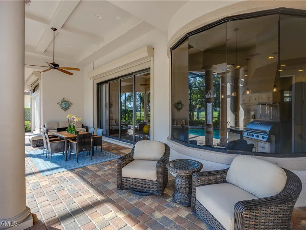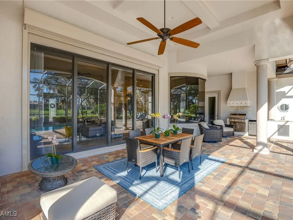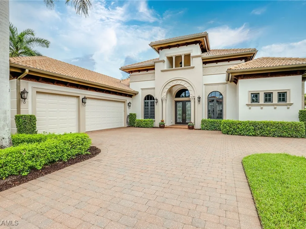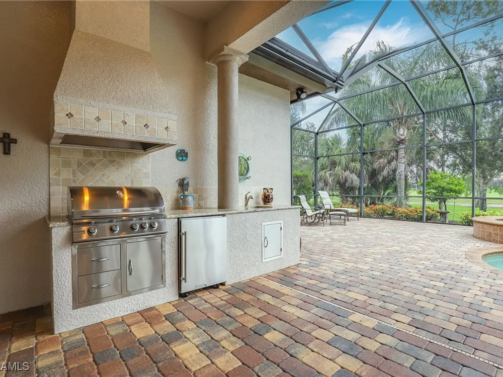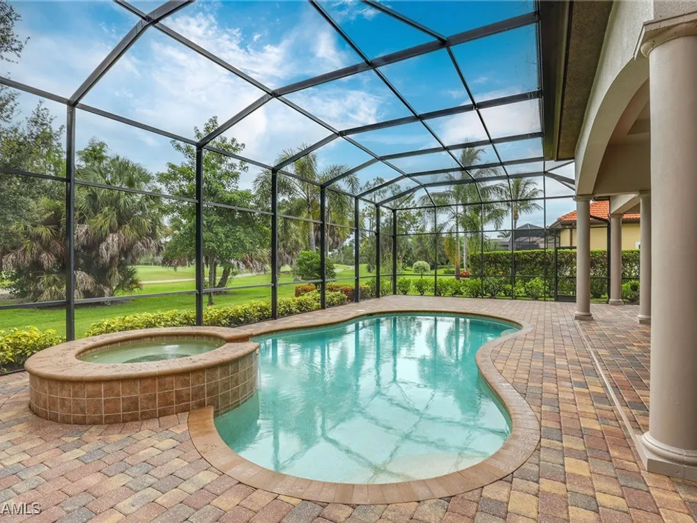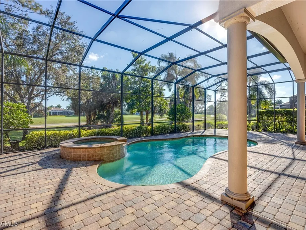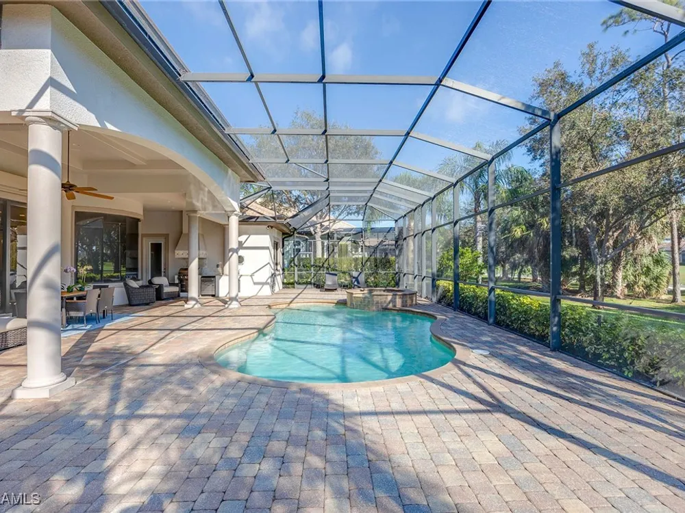 In the esteemed guard-gated Classics Plantation Estates at Lely Resort, this stunning great-room Muirfield model is a standout. Positioned on a generous premium lot with serene golf course vistas, this impeccably maintained estate offers ample space with four bedrooms, a den, and 3.5 bathrooms. Brimming with modern enhancements, it features plantation shutters, electric rolldown hurricane shutters, custom built-ins, fresh paint, and elegant crown molding throughout. The expansive covered lanai includes a vented gas outdoor kitchen, while the large screened area envelops a heated pool and spa, creating an entertainer’s paradise. The gourmet kitchen has custom light wood cabinetry, granite countertops, stainless steel appliances, gas cooktop and walk-in pantry. Conveniently just minutes from the beaches of Old Naples and Marco Island. Enjoy the highly renowned Players Club & Spa which offers resort-style swimming pools, state-of-the-art tennis and pickleball facility, fitness center, bocce ball, several restaurants, tiki bar and grill, billiards room, theater room and spa. Lely Resort is also home to three championship 18-hole golf courses.