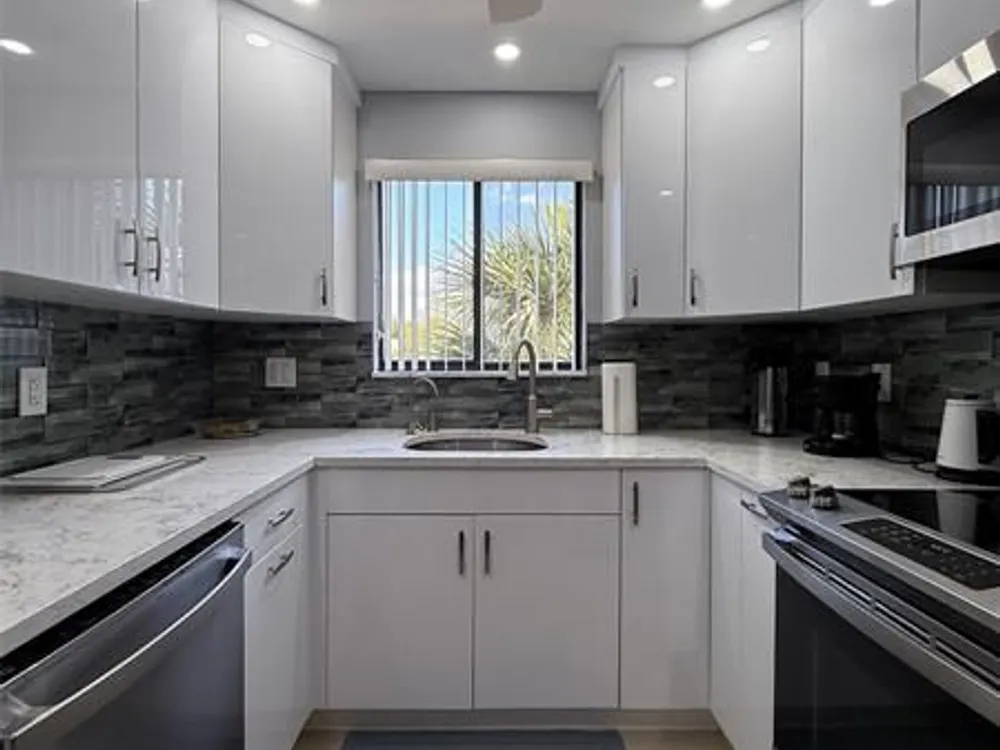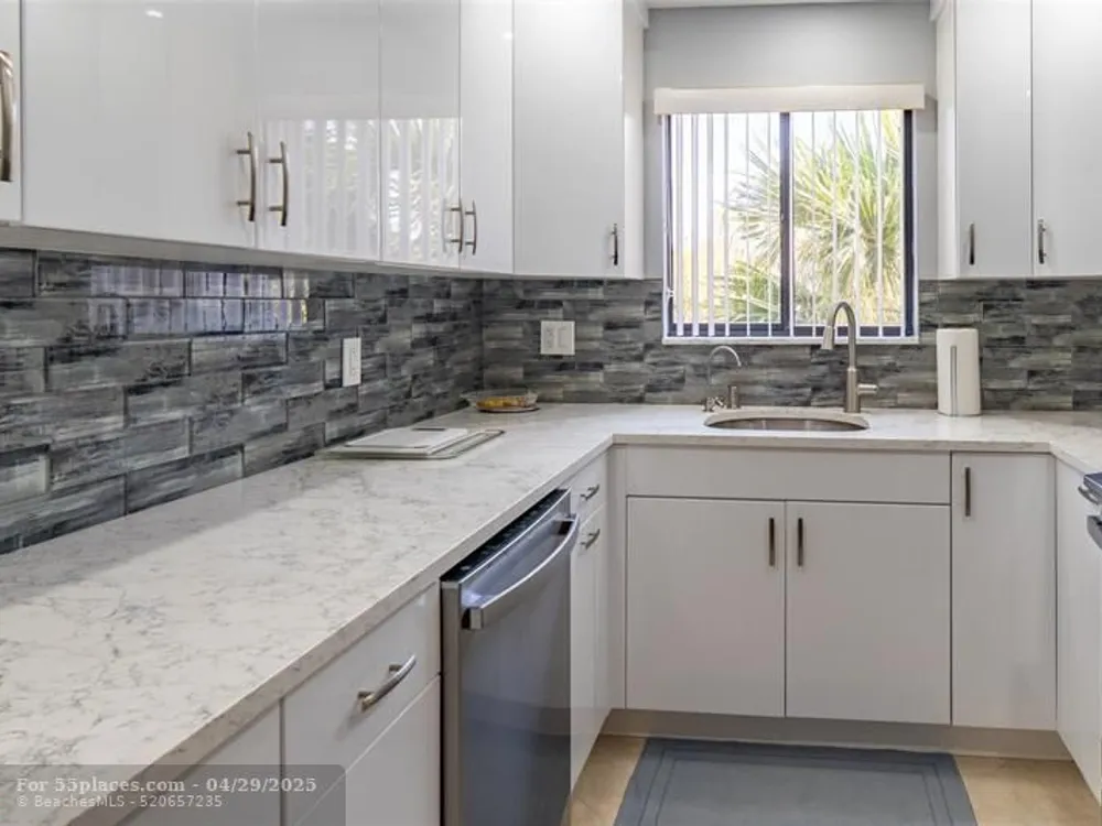 Discover this beautifully updated 2/2 condo in Ashmont at Kings Point, a premier 55+ community in Tamarac! This top-floor (3rd) corner unit offers breathtaking north-facing lake views, showcasing both sunrises and sunsets with the sun always behind you. Enjoy a custom-updated kitchen & bathrooms, meticulously designed and executed, plus new full-size washer & dryer, new stainless appliances, new water heater, newer AC (2022), under-sink water filtration and a screened balcony to soak in the serene surroundings. Just a short walk to the community pool, plus access to Kings Point’s incredible amenities, including a theater, heated pools, fitness center and courtesy busses plus a wide variety of social activities and more.