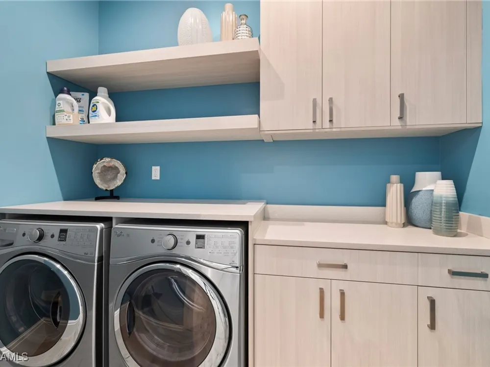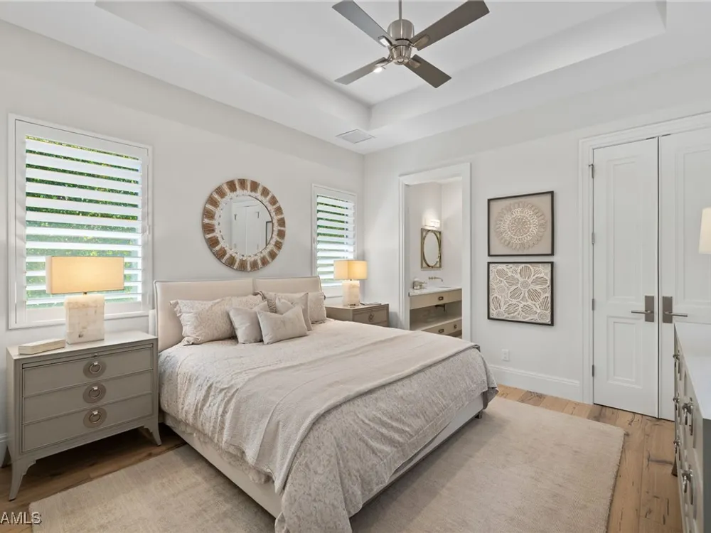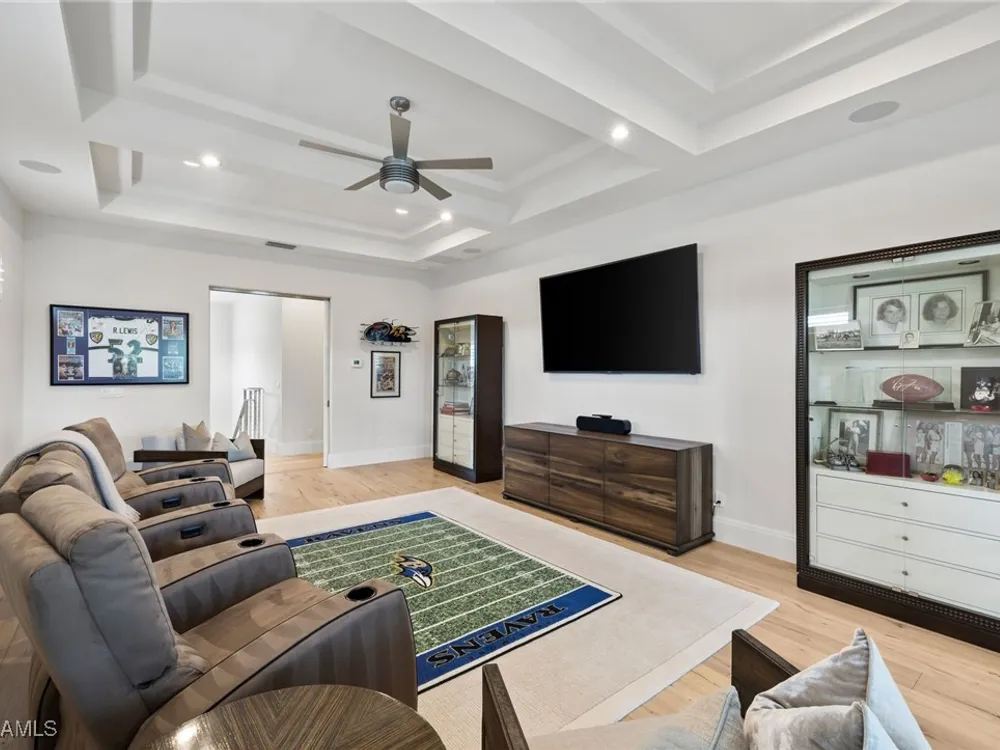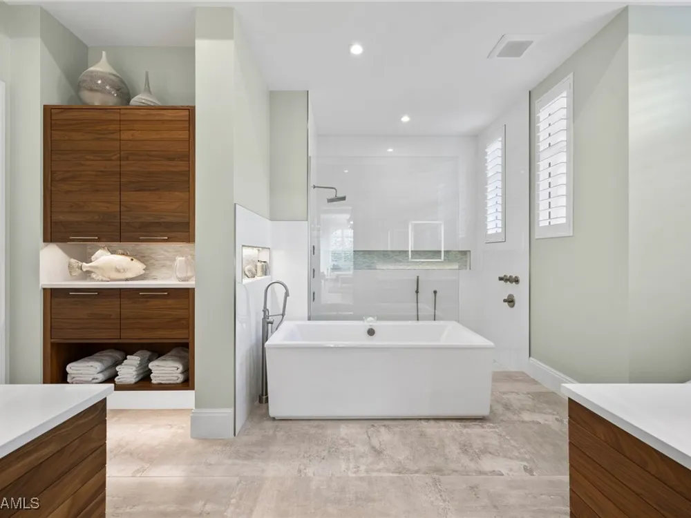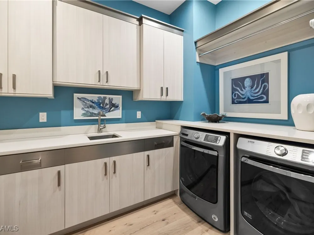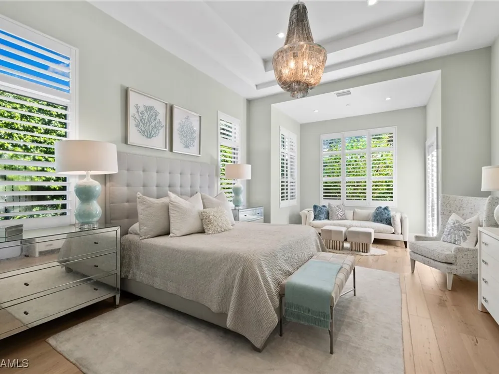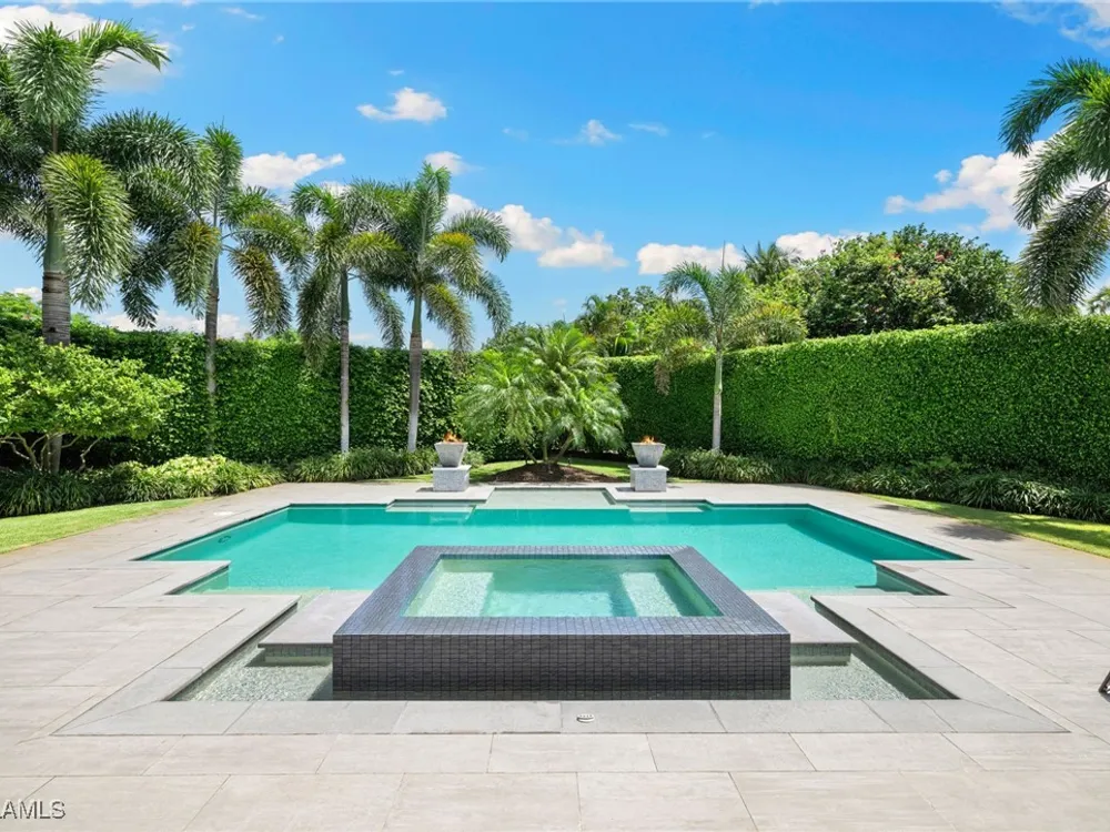 Welcome to 745 Riviera Drive — a stunning Modern Transitional masterpiece nestled on one of the most prestigious streets in The Moorings. This award-winning residence offers a rare blend of timeless architecture, cutting-edge technology, and sophisticated Florida living at its finest. Spanning 4,912 sq. ft. under air, this custom-built home features 4 spacious bedrooms, 4.5 designer bathrooms, a private office, bonus room, gym, and 3 car garage offering both comfort and flexibility. Wide-plank wood flooring flows throughout the main living area, complementing the clean lines and warm textures that define this home’s architectural elegance. The heart of the home is a chef’s dream kitchen, featuring custom cabinetry, dual islands, two dishwashers, two beverage drawers, a wet bar with ice maker, and top-of-the-line appliances including a Miele 8 burner gas cook top all seamlessly integrated withControl4 Smart-Home technology for lighting, audio, televisions and HVAC. A true showstopper, the brick-walled wine room is framed by a dramatic floating staircase with stainless steel cable railings and a sleek glass enclosure—perfectly blending form and function. The spa-inspired primary suite offers a serene escape, with floating walnut vanities, pearlized glass tile accents, and concrete-style flooring that add modern sophistication to the luxurious bath. Designed for the ultimate in indoor-outdoor living, the approx. 1,000 sq. ft. outdoor living area includes a brick-wrapped. fireplace, summer kitchen with refrigerator, gas grill, and built-in ice cooler—ideal for entertaining year-round. Enjoy the Florida sun by the oversized pool and spa, surrounded by striking fire bowls, lush landscaping, and thoughtful design to maximize privacy and ambiance. Additional highlights include: full-home generator, electric hurricane and screens on the lanai, three brand-new A/C units, two laundry rooms, linear indoor fireplace and meticulously curated furnishings. This home is a rare opportunity to own a one-of-a-kind residence in The Moorings—proximity to Moorings Private Beach, shopping and dining while offering unmatched quality, location, and lifestyle.X FLOOD ZONE AND SITS 13 FT IN ELEVATION.