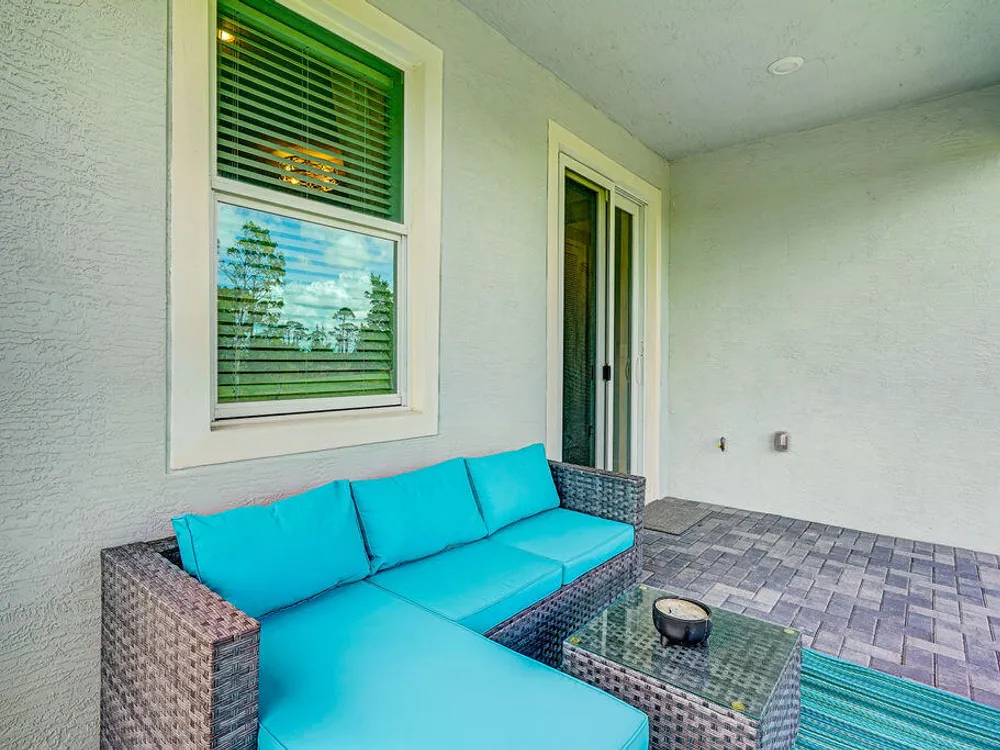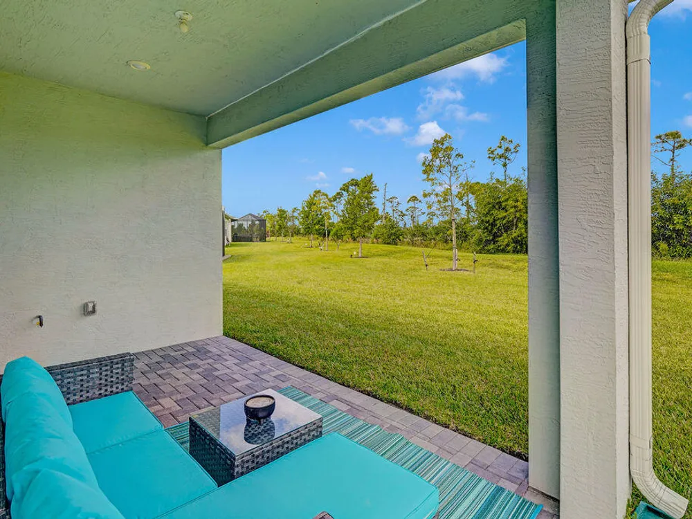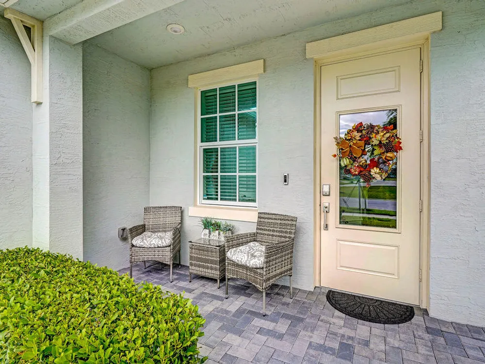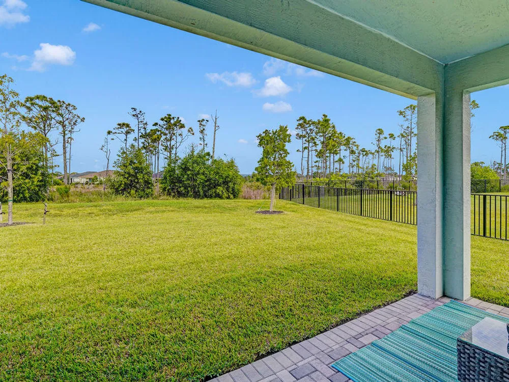 Turnkey FULLY FURNISHED 3/2 immaculate home located in an exclusive to 55+ active adults GATED community. This rarely lived in home is located on a cul-de-sac lot backing up to the natural PRESERVE offering no back neighbors for privacy. The open floorplan with 9ft ceilings has a gourmet kitchen with Quartz countertops, large island w/bar, S/S appliances and a GAS range for immediate cooking. Beautiful tile plank floors throughout home, Crown molding, ceiling fans, IMPACT glass, a covered front porch and a covered back lanai w/ brick pavers and GAS hook-up overlooks the peaceful preserve. The resort-style clubhouse offers a heated pool/spa, fitness center, cafe, card room, movie theater, tennis, pickleball and many planned activities. Convenient location near Publix, FL TNPK and I-95
