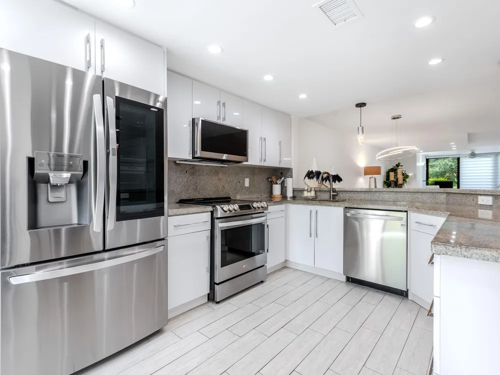 - Dishwasher, Disposal, Dryer, Ice Maker, Microwave, Electric Range, Refrigerator, Smoke Detector, Washer, Electric Water Heater