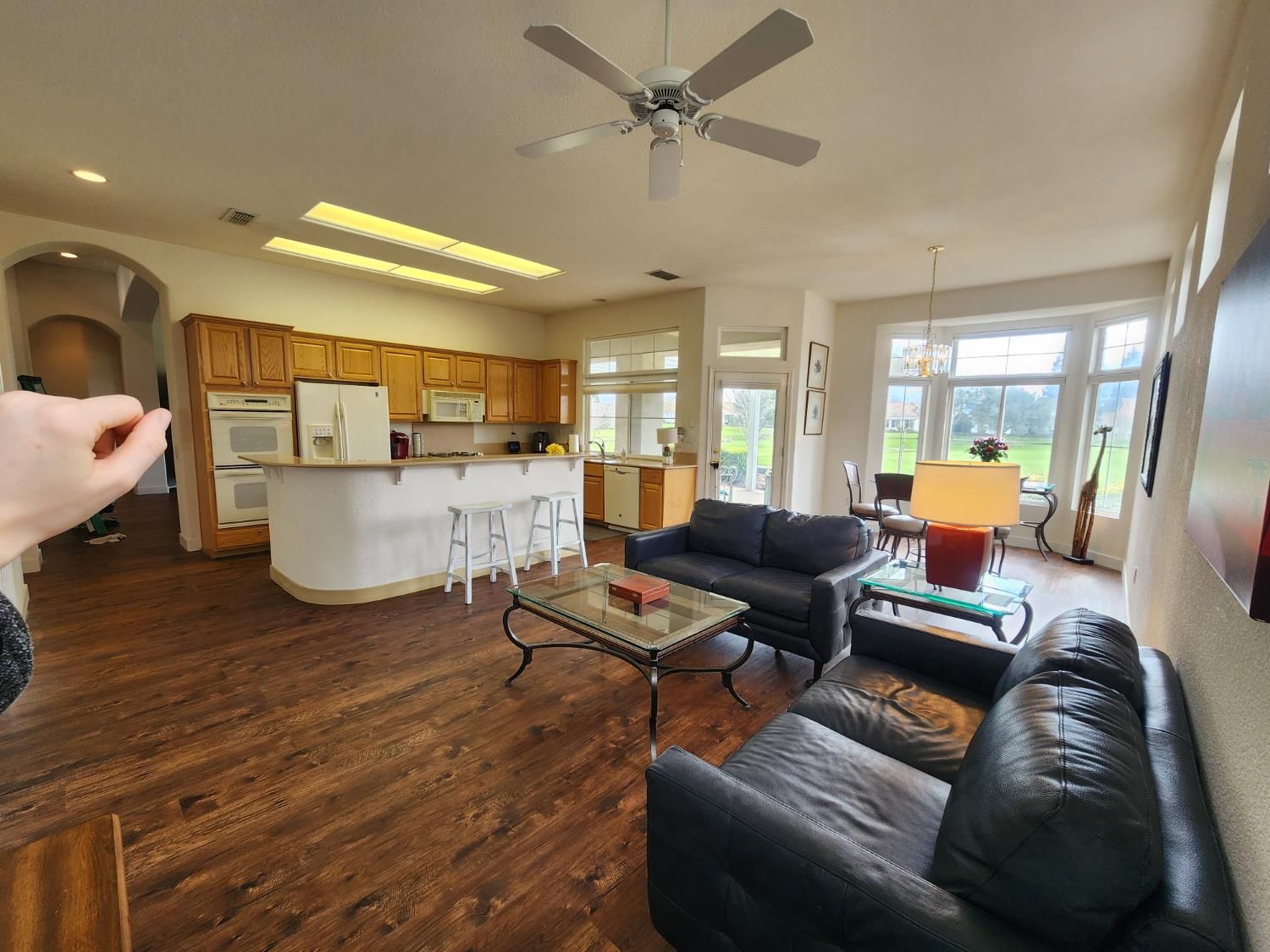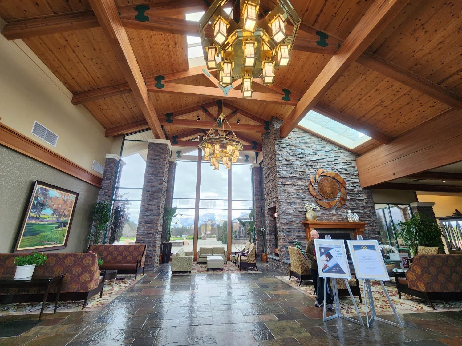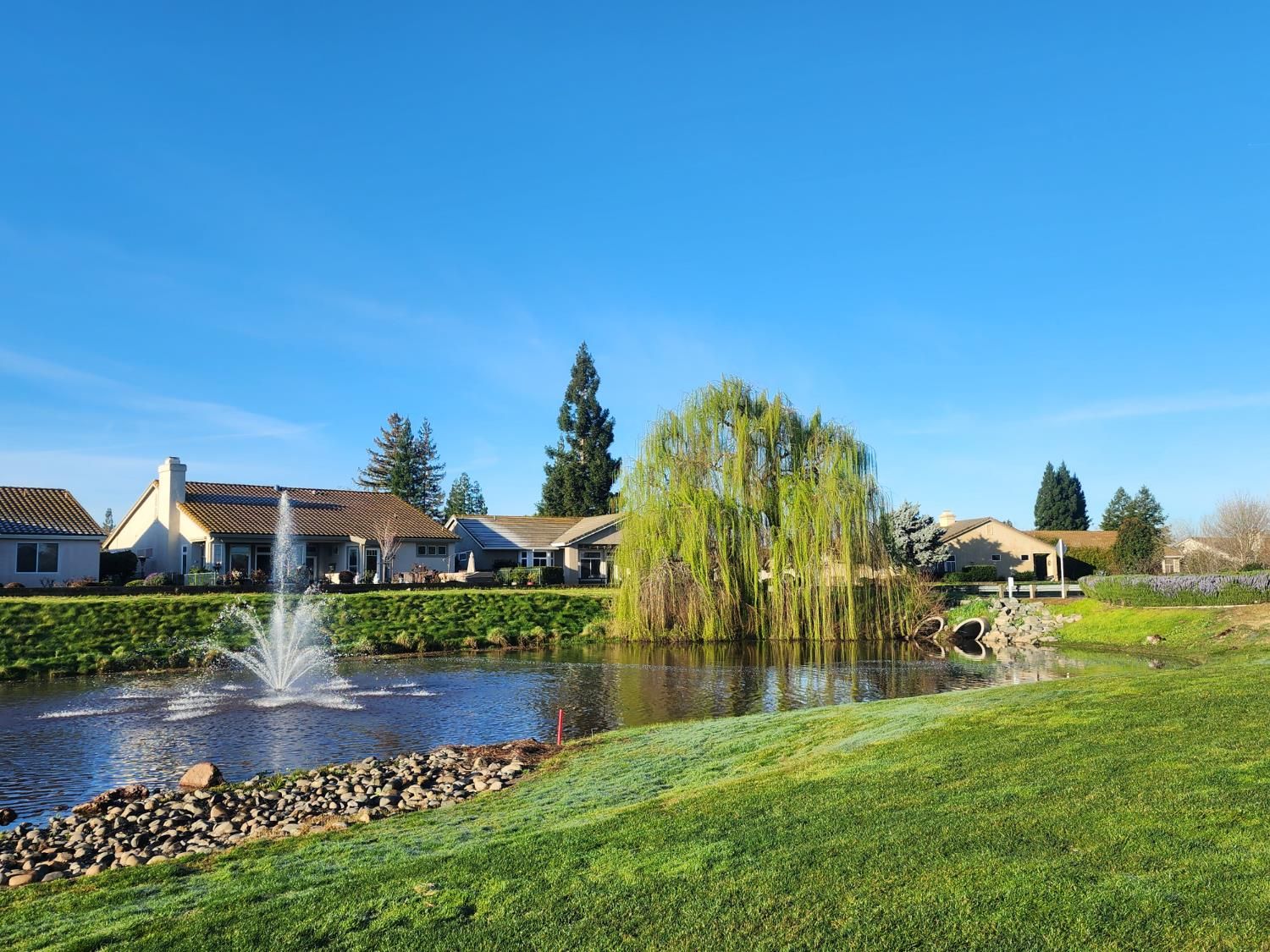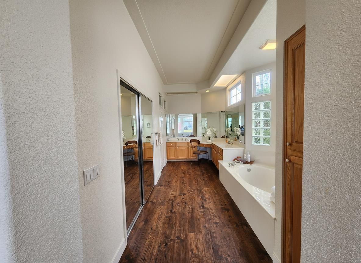 55+ community with some exceptions. View of a golf course including the big fountain onto the right. Cozy cottage look. This style was originating in 17th-century New England. 2.5 garage spaces (extra space for a golf cart). Tall walls. Engineered hardwood (the REAL stuff) - made of real wood. Has a Community Center, including a restaurant, events, bus trips, clubs, groups, classes. DELTA BREEZE floorplan. The Sun City Roseville website: https://suncityroseville.org/index.php. Their contact information: 7050 Del Webb Blvd, Roseville, CA, 95747. Phone: 1 (916) 774-388. After Hours Number: 1 (916) 624-6811.