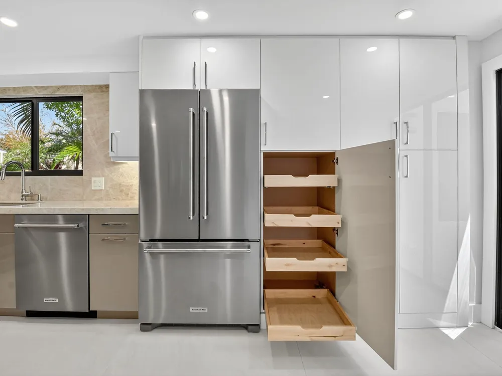 - Bar, Built-in Shelving, Entry Level Living Area, Entrance Foyer, Pantry, Split Bedrooms, Walk-In Closet(s), Home Office, Storage, Living/Dining Room, Eat-in Kitchen, Impact Glass, Sliding Window(s), Dual Sinks, Primary Downstairs, Separate Shower
