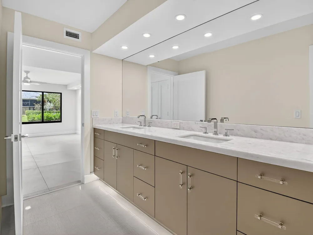 A new renovation of the most desirable model, this FIRST FLOOR BOBBY JONES has just been completed and is ready for occupancy. Quality construction by a prominent licensed General Contractor with over 40 years of commercial and residential construction experience, this condominium is completely renovated with a new impact front door, impact windows and sliders throughout, new A/C, new hot water heater, new copper piping, new interior doors, and so much more. No expense has been spared as you enter into the condo with beautiful oversized 48 inch square tile flooring in the main living areas, stunning quartzite countertops, and under cabinet lighting in the bathrooms. Walking distance to the club, this property is the perfect place to call home and buy in Gleneagles Country Club