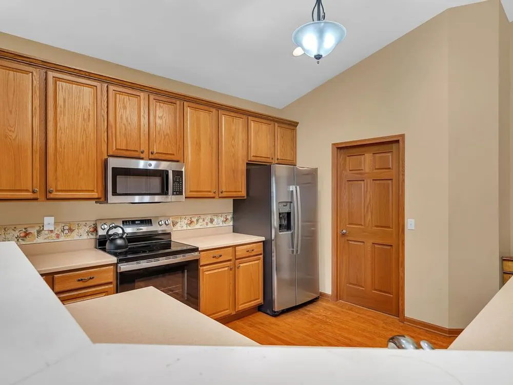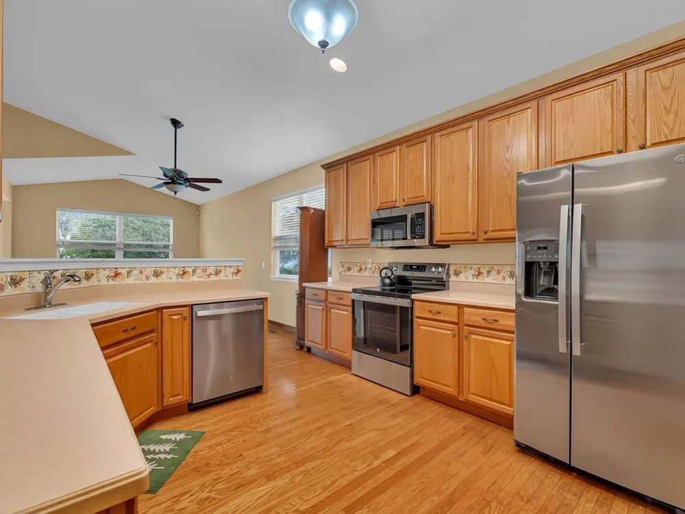 Welcome to this beautifully maintained ranch home nestled in the quiet and highly sought-after 55+ community of Grand Haven. Offering the perfect blend of comfort, style, and functionality, this home is designed for easy living and active enjoyment. Step into this large open floor plan, highlighted by gleaming hardwood floors, new carpet, vaulted ceilings, and a seamless flow throughout. The kitchen is a chef's delight with brand new (July 2025) stainless steel appliances, extended cabinetry, and Corian countertops that ties it all together. The generously sized eat-in breakfast area provides ample room for casual dining and everyday meals, conveniently located just off the kitchen. The spacious primary suite features vaulted ceilings, a large walk-in closet, and a private en-suite bathroom complete with a whirlpool tub, and a separate shower. A second bedroom with ample closet space is perfect for guests. It's a bonus having a 3rd room that can be a den or office offering flexible use. Enjoy multiple living spaces designed for comfort and versatility. The inviting family room is ideal for relaxing or entertaining, with warm hardwood floors that add character and charm. An additional sitting area provides a quiet spot for reading, conversation, or flexible use as a hobby or media space. The sunroom, also finished with hardwood flooring, offers a peaceful retreat with access to the backyard patio-perfect for enjoying your morning coffee or unwinding at the end of the day. A well-equipped laundry room includes a brand new washer and dryer. The home is updated with a new August of 2025 HVAC system, new smoke detectors (2025) a new hot water tank (2024), and a replaced roof. Additional features include a 2-car garage with attic storage for added convenience. Enjoy resort-style living with access to Grand Haven's exceptional amenities including a clubhouse, fitness center, indoor and outdoor pools, and a full calendar of community activities. Don't miss your chance to live in one of the area's most desirable active adult communities-schedule your private showing today!