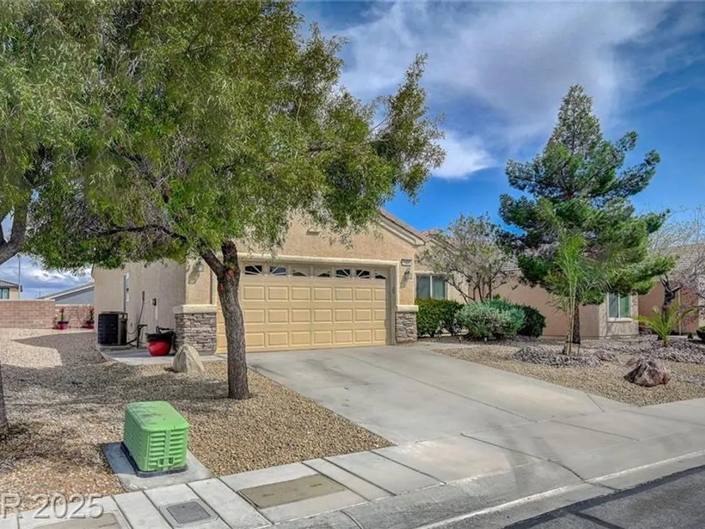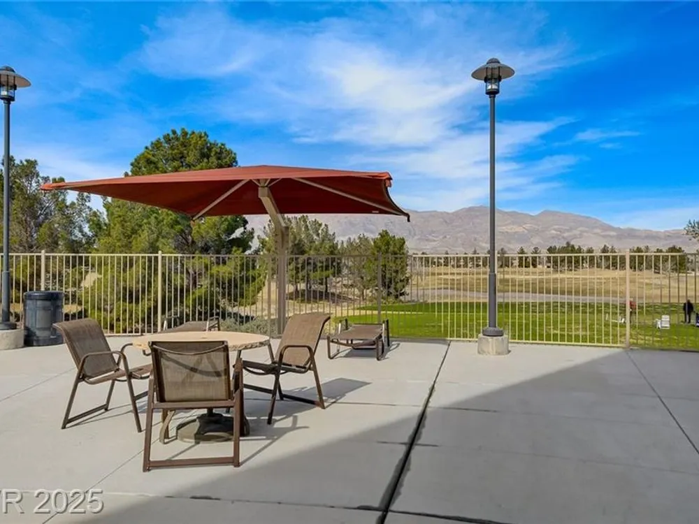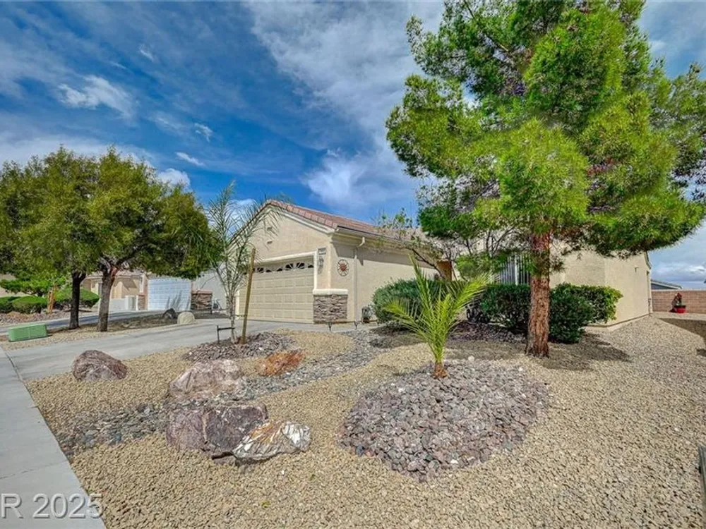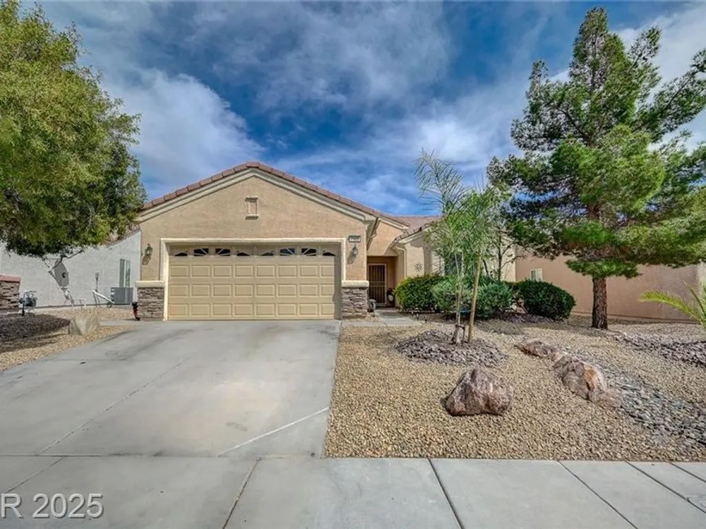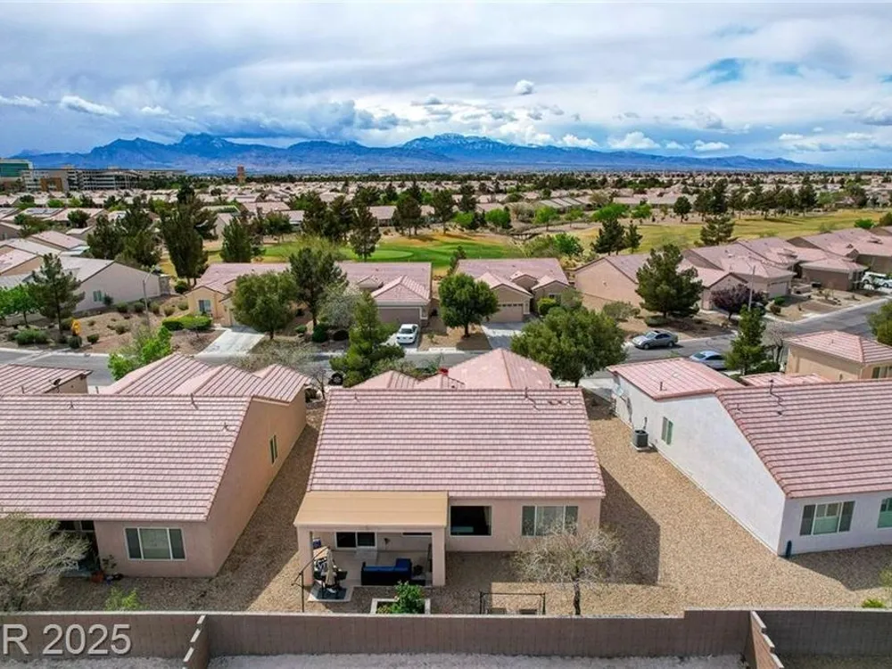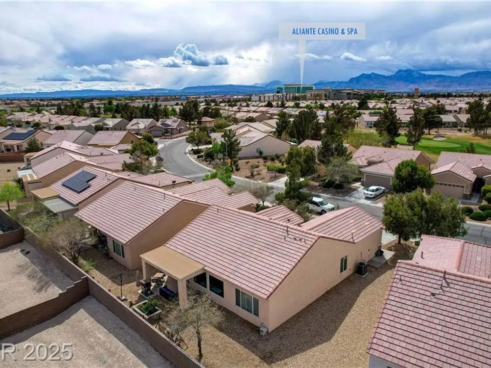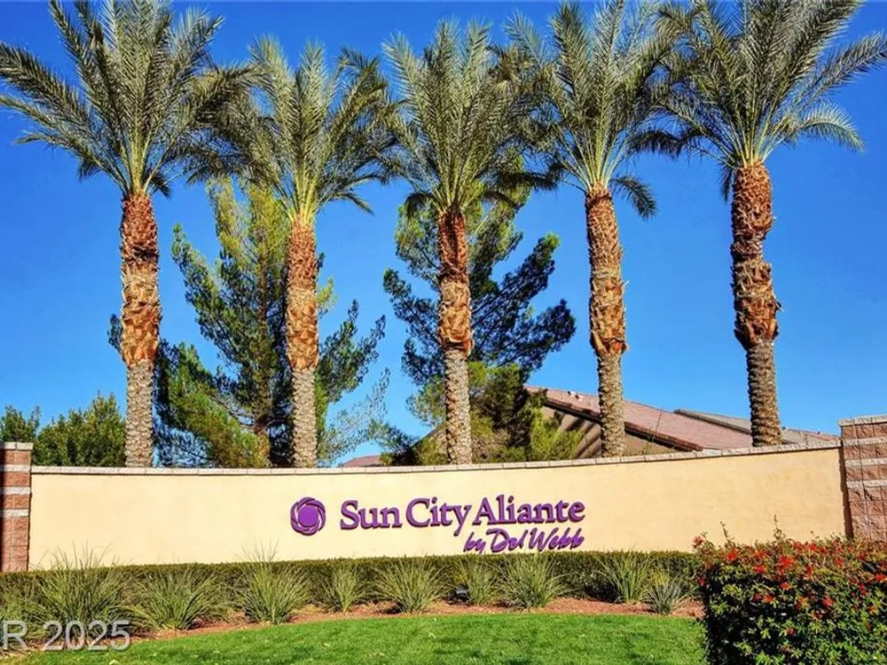 Discover this stunning single story home in the highly desirable age restricted Sun City Aliante community! Featuring 2 beds + den, 2 baths, and breathtaking mountain views, this home offers an open-concept design with a spacious kitchen, large breakfast bar, granite countertops, 2 pantries, and all included stainless steel appliances. The primary suite boasts a huge walk-in closet and a cozy gas fireplace. Enjoy luxury vinyl plank & tile flooring throughout, upgraded light fixtures, and a den that can serve as a third bedroom. The backyard oasis includes a covered patio with a Charbroil Gas BBQ with an option to fully fence and a garden area. The finished 2 car garage features epoxy floors, a large workshop, ample storage, 30-amp outlet, full water treatment/filtration system and water softener. Sun City Aliante offers top tier resort-style amenities: golf, indoor and outdoor pools/spas, tennis, pickleball, basketball courts, clubhouse, fitness center, and more! Don’t miss this one!