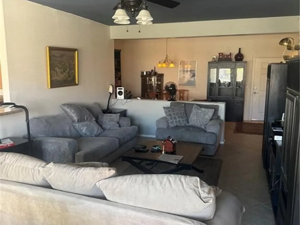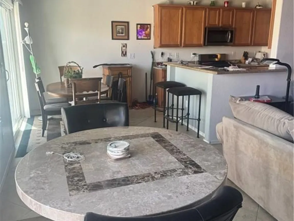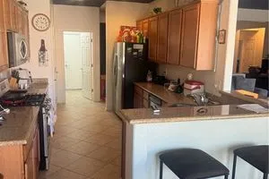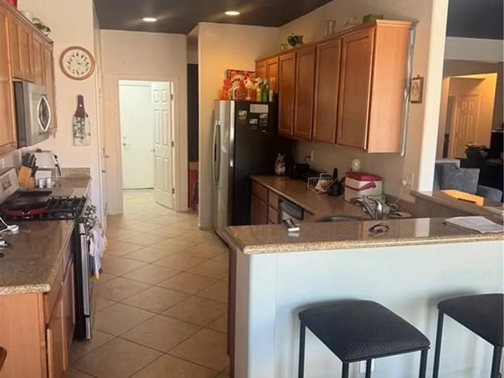 Located in the desirable 55+ community of Sun City Aliante, this single-story home offers 3 bedrooms, 2 bathrooms, and a 2 car garage. The kitchen features abundant cabinet space and stainless steel appliances. The spacious primary suite includes an ensuite bathroom with double sinks and a walk-in closet. Enjoy outdoor living in the private backyard with a covered patio that is perfect for relaxing or entertaining.