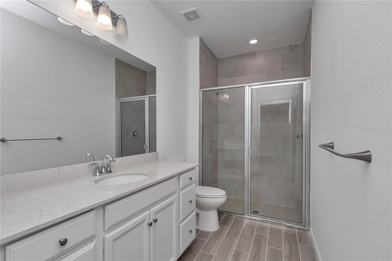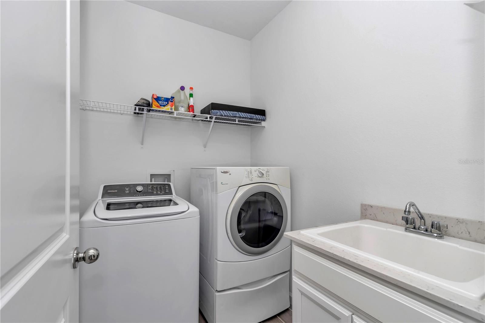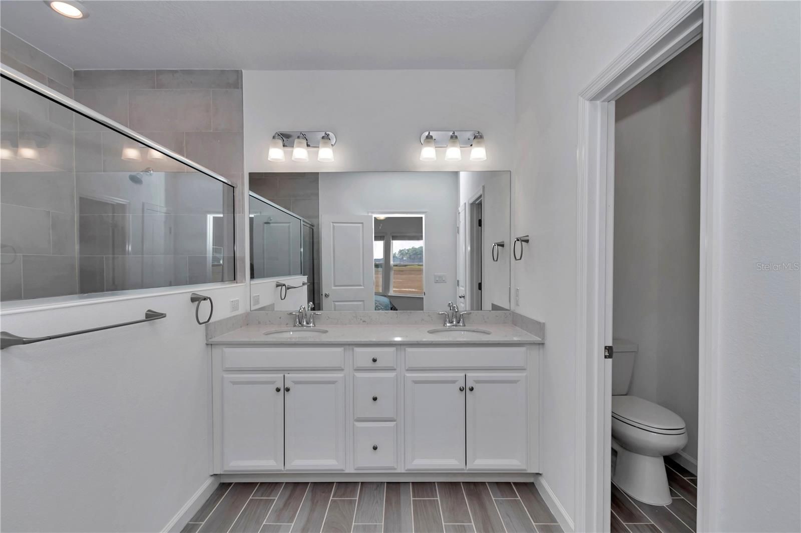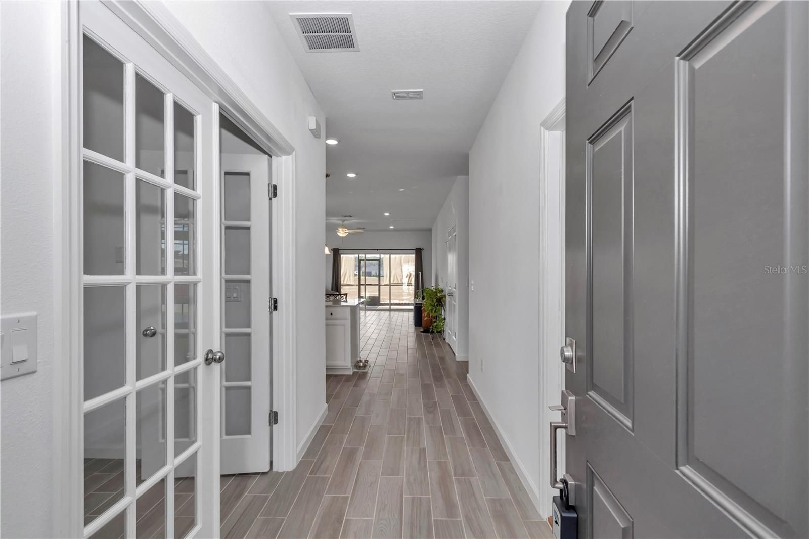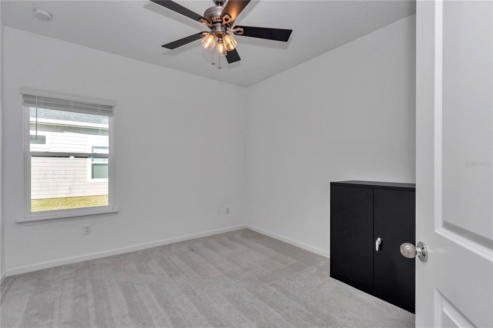 Beautiful Move-In Ready Home in a Quiet 55+ Community in SW Ocala! This stunning 3-bedroom home with a flex room/den, 2 bathrooms, and a 2-car garage offers 1,755 sq. ft. of stylish, low-maintenance living. Located in a peaceful 55+ community, this home immediately impresses with its open concept design and serene private views. Step through the foyer and take in the bright, airy layout. Just off the entry sits a versatile flex room with elegant French doors—perfect for a home office, hobby room, or guest space. Throughout the home, you'll find 9 ft ceilings, crown molding, wood-look tile flooring, recessed LED lighting, and upgraded window coverings. The expansive Kitchen and Great Room is the true heart of the home—ideal for entertaining! Enjoy quartz countertops, stainless steel appliances, a deep sink, staggered white cabinetry, and an abundance of natural light. The spacious laundry room includes a washer & dryer, utility sink, and base cabinet for extra storage. Guest bedrooms are thoughtfully separated by a full hall bath, offering privacy for visitors. The primary suite is tucked away at the back of the home and features a large walk-in closet and a beautiful en suite bathroom with a glass-enclosed step-in shower, rain shower head, and double-sink vanity. Open the triple sliding glass doors and step into your private Florida oasis! The large screened lanai—with ceiling fan. LOW-MAINTENANCE, RESORT-STYLE LIVING: The community’s brand-new amenity center features a pool, pickleball, shuffleboard, and bocce ball—everything you need to stay active and enjoy the Florida lifestyle! This home is truly move-in ready—nothing to do but unpack and enjoy!