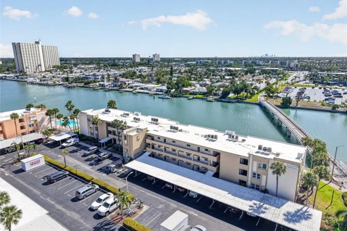 This 1-bedroom, 1-bath residence has been thoughtfully updated featuring designer cabinetry with soft-close hardware, sleek white quartz countertops, and a full suite of black stainless steel LG appliances. The kitchen is both stylish and functional, anchored by an oversized undermount sink and modern finishes, while the bathroom mirrors the same high-end design for a cohesive, elegant feel. 16” ceramic tile flooring throughout adds to the bright, open aesthetic. The spacious living area offers plenty of room to relax or entertain, while the beautifully appointed bedroom provides a peaceful retreat—both showcasing stunning water views that create a true sense of serenity. Located in the Barbados building, recent updates include a new roof (2024) and new elevator installation, along with the convenience of assigned covered parking near the elevator. Bay Island is a gated 55+ waterfront community offering an unmatched resort-style lifestyle, including 6 heated pools, 4 lighted tennis courts, a newly renovated clubhouse, fitness center, shuffleboard, billiards, library, and social spaces. Enjoy scenic walks along the 1.5-mile waterfront seawall, or take a short stroll to the white sandy beaches of St. Pete Beach, just minutes away. With its prime location, breathtaking views, stylish updates, and incredible amenities, this condo offers the perfect blend of relaxation and active coastal living.