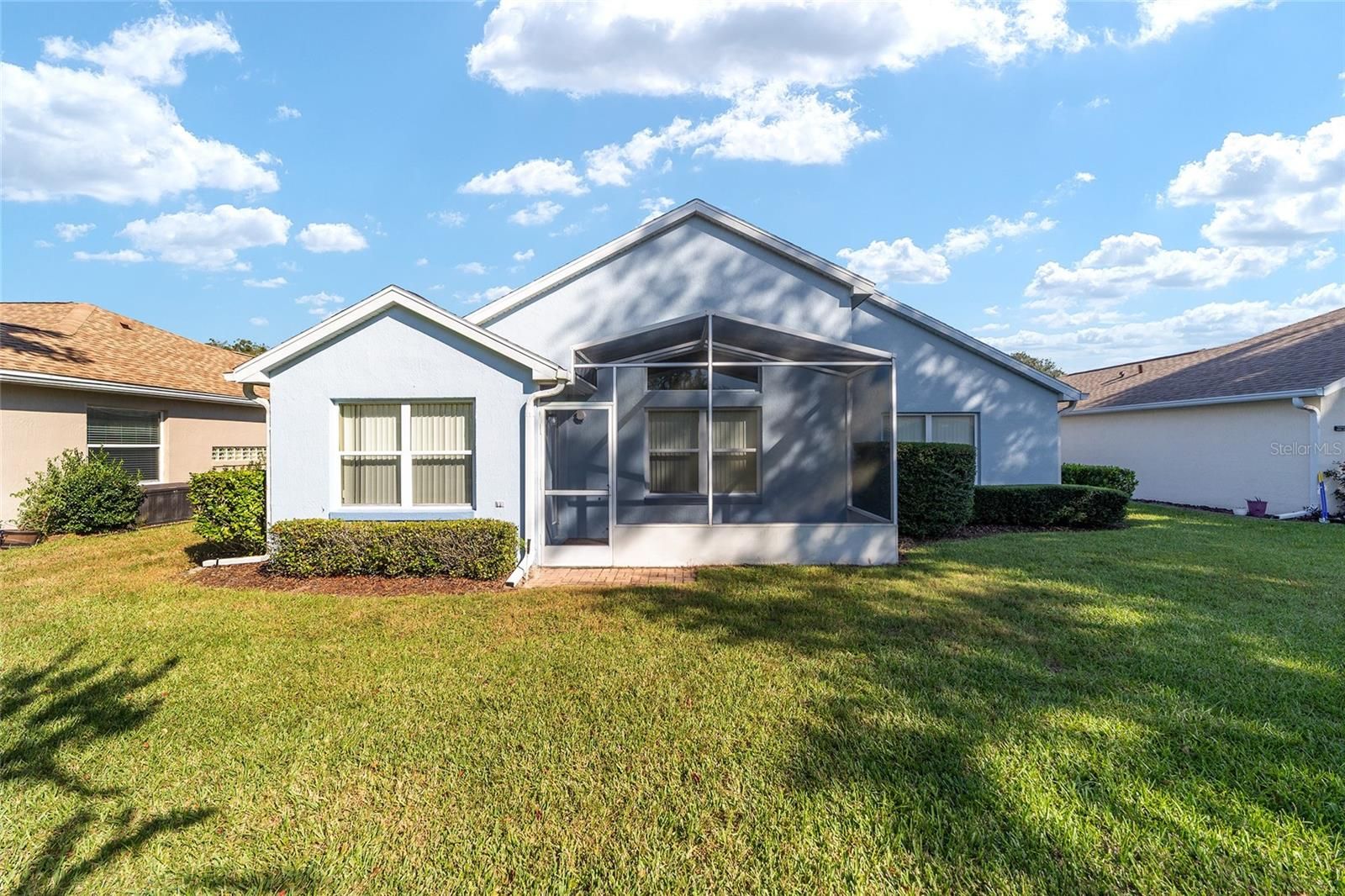 This rare Ocala model on a fully maintained lot lets you spend more time doing what you love. Located less than 1 mile from the Royal Oaks Golf Club and the Palm Grove Clubhouse, it is just a short golf cart ride to golf, swimming, a fitness center, and events like dancing, bingo and more. And you can ride down to the Orchid Club with so many more activities, as well as tennis and pickleball. This open concept, split plan with high ceilings is light and bright in every room! The spacious kitchen has a bar and opens to the living area, which is great for entertaining. The breakfast nook features a window overlooking the beautiful landscaping. And you can step right outside to the screened in patio where you can relax with a morning coffee and watch the birds begin their day. The spacious primary bathroom includes a double sink vanity and a step in shower with a built in shower bench. On the other side of your home is the guest bedroom, and bathroom with a granite countertop. A retractable garage screen door allows you to tinker in privacy with a breeze and natural light, and notice the double driveway with room for parking. Block construction with recent exterior paint, new roof in 2021 with a 50-year shingle manufacturer's warranty, and new AC in 2014. With all of this AND a community restaurant, this home offers the perfect balance of convenience and leisure. Embrace a low-maintenance lifestyle with easy access to all of the community’s best amenities. Your fully maintained lot includes regular mowing, irrigation, mulching, and pest control. Service fees include garbage and yard waste collection service, 24-hour security service, basic cable service, and use of all recreational facilities (except for the golf course). The property information provided is deemed to be true and correct, however, Keller Williams Realty Inc., nor its agents, guarantee the accuracy of the information. One photo is virtually staged.
