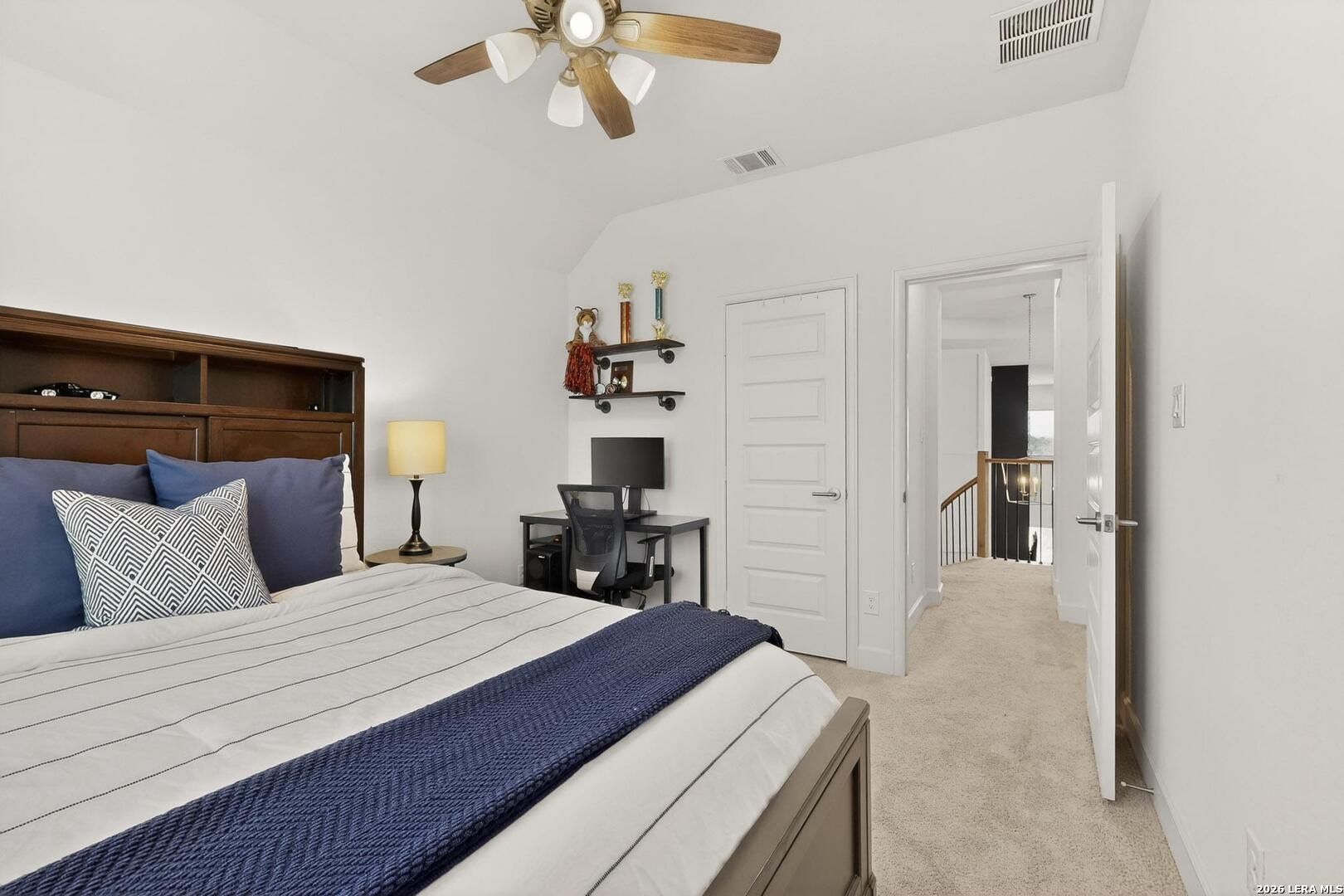 Searching for a 4 bed home in Veramendi that feels refined, welcoming, and truly move in ready? This 2024 Perry home offers 3,399 sqft of intentional design, a main level primary retreat, and expansive entertaining space inside one of New Braunfels' premier golf cart communities. Welcome to 747 Alta Circle, where mornings begin with natural light and evenings end with movie nights upstairs. Built in 2024 and meticulously maintained, this residence offers the advantage many buyers want right now: fully completed, move in ready, and available without construction timelines or upgrade uncertainty. Landscaping is in place, systems are installed, and what you see is exactly what you get. The layout was designed for flexibility. The primary suite is privately positioned downstairs with a spa style bath, soaking tub, dual vanities, and generous closet space. A secondary bedroom on the main level is ideal for guests or multigenerational living, while a dedicated study provides quiet focus. At the heart of the home, the kitchen opens effortlessly into the family room. Gas cooking, an oversized island, walk in pantry, and seamless flow into both dining areas make hosting feel easy and natural. The fireplace anchors the space with warmth. Upstairs expands into experience: Spacious game room, dedicated media room, and secondary bedrooms. Energy efficient construction includes a HERS rating, tankless water heater, 16+ SEER systems, and Low E windows. Located in the golf cart friendly Veramendi community with pool, clubhouse, trails, parks, sports courts, and waterfront access coming soon! Zoned to New Braunfels ISD and minutes to TX 337, Hwy 46, shopping, dining, and Gruene. This 4 bed home in Veramendi blends luxury, certainty, and lifestyle in one of New Braunfels' most desirable communities. **Home is still under the Perry Homes 10 year Structural Warranty through Dec 2034 and 2 year Workmanship Warranty through Dec 2026**