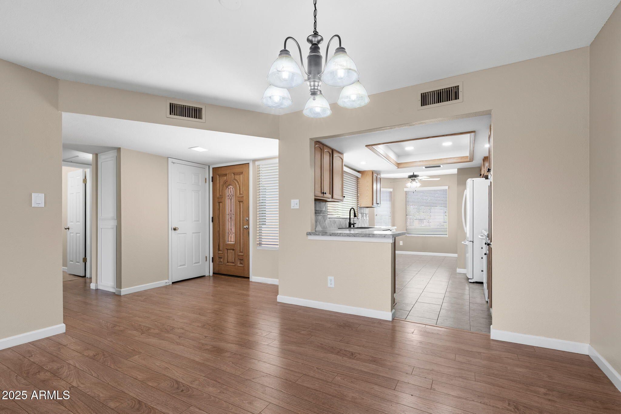 Welcome to effortless luxury living! All you need to bring are your clothes, golf clubs, and toothbrush—the rest is ready for you. The kitchen boasts sleek tile flooring, smooth ceilings, new LED recessed lighting, and wired ceiling fans for year-round comfort. Elegant laminate wood floors flow throughout, while the new HVAC system (installed Spring 2022) ensures modern efficiency. Even the garage, entry, and back patio showcase pristine epoxy finishes for a polished touch. Perfectly situated near the US 60 and Red Mountain freeways, you'll have quick access to Mesa Gateway and Sky Harbor airports, Costco, and premier shopping and dining at Superstition Springs and San Tan Mall. Beyond your doorstep, discover the unmatched lifestyle of the Country Club & Golf Community, complete
