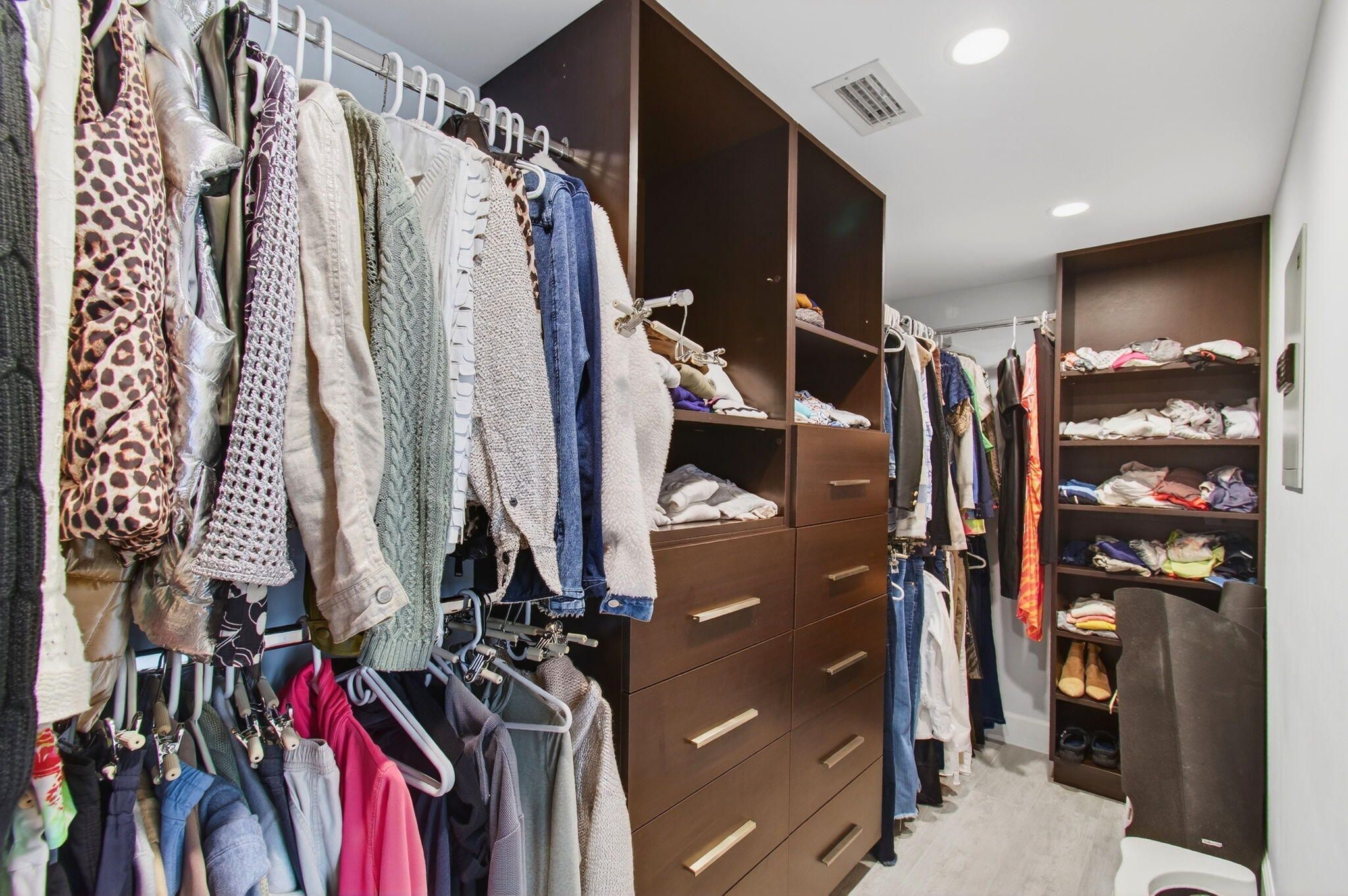 - Walk-In Closet(s), Split Bedrooms, Closet Cabinetry, Impact Glass, Living/Dining Room, Eat-in Kitchen, Entry Level Living Area, Dual Sinks, Separate Shower