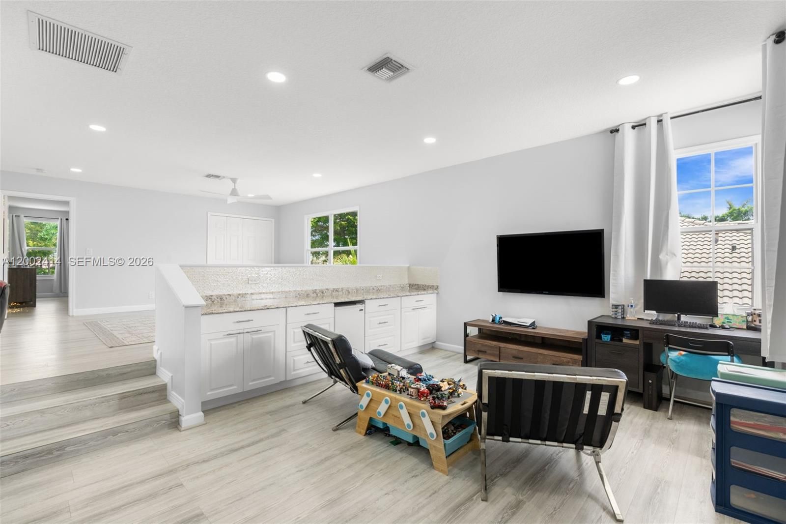 - Built-in Features, Bedroom on Main Level, Breakfast Area, First Floor Entry, High Ceilings, Living/Dining Room, Main Level Primary, Sitting Area In Primary Bedroom, Split Bedrooms, Walk-In Closet(s)