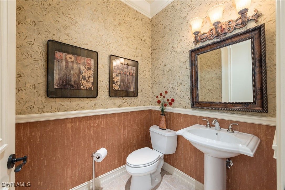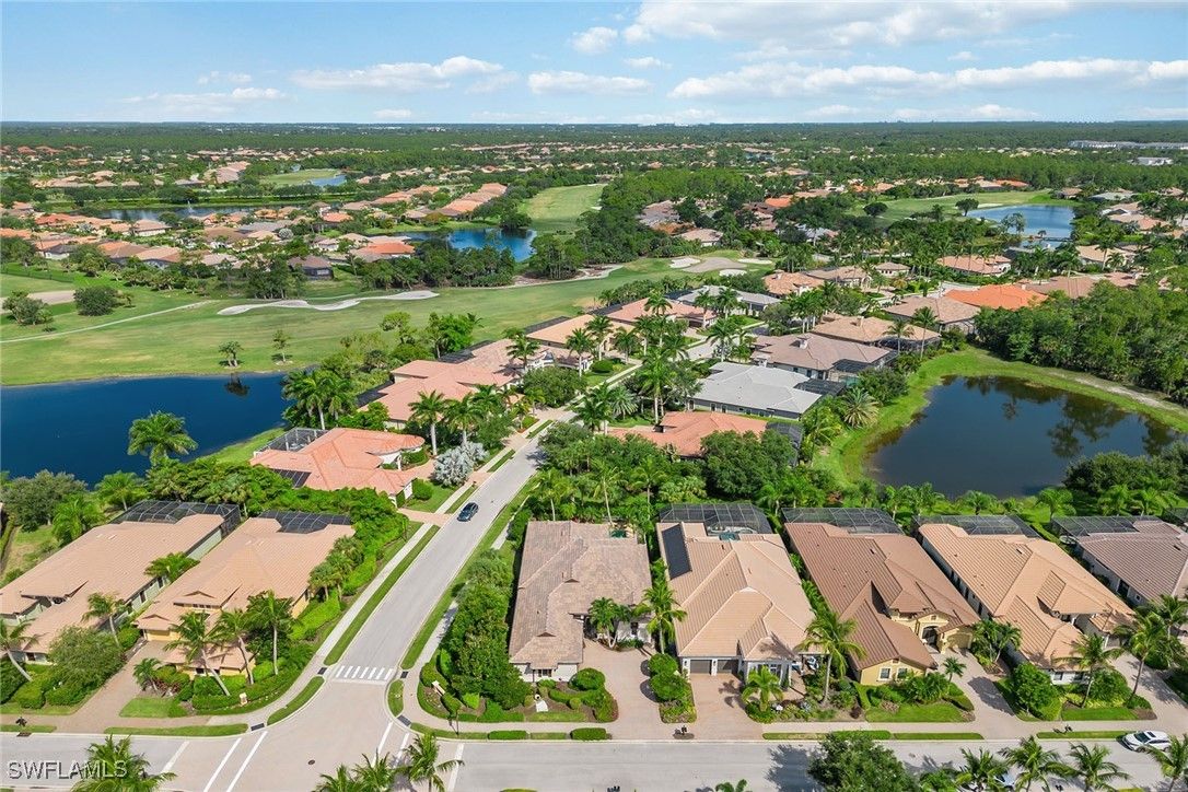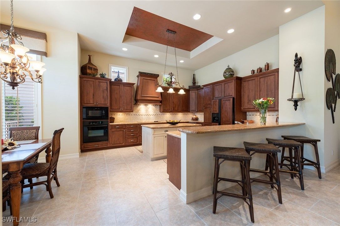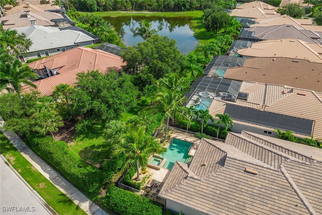 Welcome to an exquisite residence in the prestigious Classics Plantation Estates at Lely Resort, where luxury and comfort harmonize effortlessly. This stunning home offers 3,099 square feet of living space with three bedrooms, a den, three full baths, one-half bath, a two-car garage and upscale amenities. On a private cul-de-sac with northwest exposure, this home features an elegant tile roof, impact doors and windows, and a wide paver driveway and walkway. The private lanai includes a brick paver floor, covered outdoor living area with recessed lighting and a fully equipped outdoor kitchen with a built-in gas grill, hood, mini refrigerator and tile backsplash. The heated pool and spa, with waterfall feature, create an idyllic retreat. The home is turnkey furnished with tile flooring in the main living areas and a split bedroom concept for privacy. Enjoy a state-of-the-art Bose surround sound system that enhances your entertainment experience. The kitchen is a chef's dream, equipped with custom wooden cabinets, under-cabinet lighting, granite countertops, recessed lighting, a tile backsplash, a four-seater breakfast bar and a center island with storage. Top-of-the-line KitchenAid appliances complete this culinary space. Adjacent to the kitchen is a dining area with a bank of windows overlooking the pool, plantation shutters and lanai access through a glass door. The formal dining room features custom wood trim, a tray ceiling and tall windows, while the living room offers glass sliders opening to the lanai and a custom wood built-in entertainment center. The owner’s suite is a sanctuary with lanai access, plantation shutters, a walk-in closet with custom built-ins, and an en-suite bath featuring dual vanities, a walk-in shower with a glass enclosure and a separate soaking tub. Both guest bedrooms are designed with comfort in mind, one with a private garden view, a walk-in closet and an en-suite bath with a vanity and shower-tub combo, and the other with tall windows, a walk-in closet, and an en-suite bath with a vanity and walk-in shower with a glass enclosure. The den, with its custom tray ceiling, glass French doors and custom-built cabinets with a seating area by the window, offers an ideal space for work or relaxation. The powder bath is adorned with wood trim and crown molding. The laundry room provides ample storage with white cabinets, a utility sink, a Whirlpool top-load washer and a Whirlpool front-load dryer. The spacious garage completes this exceptional home. Residents of Lely Resort enjoy unrivaled amenities, including access to The Player’s Club & Spa, a 15-acre tropical oasis, and three championship golf courses, two resort courses open to the public and members-only Classics Country Club with no waiting list. Ideally near Marco Island and downtown Naples, this home offers an exceptional blend of luxury living and everyday convenience in the serene, lush setting of Classics Plantation Estates at Lely Resort.