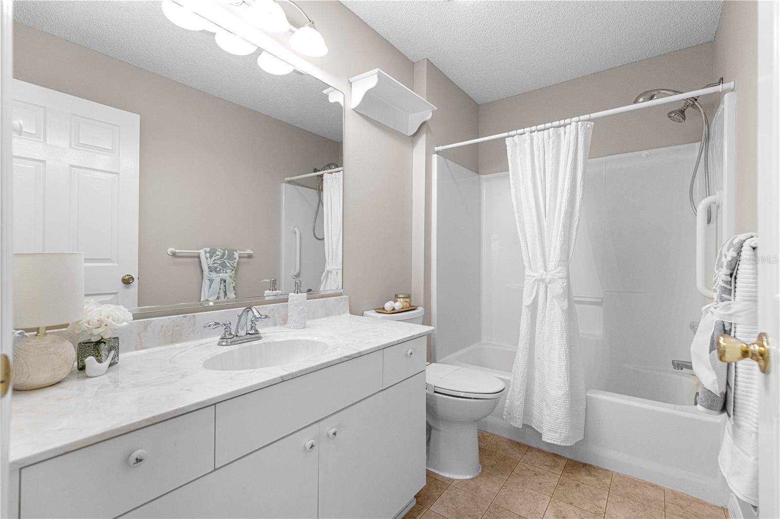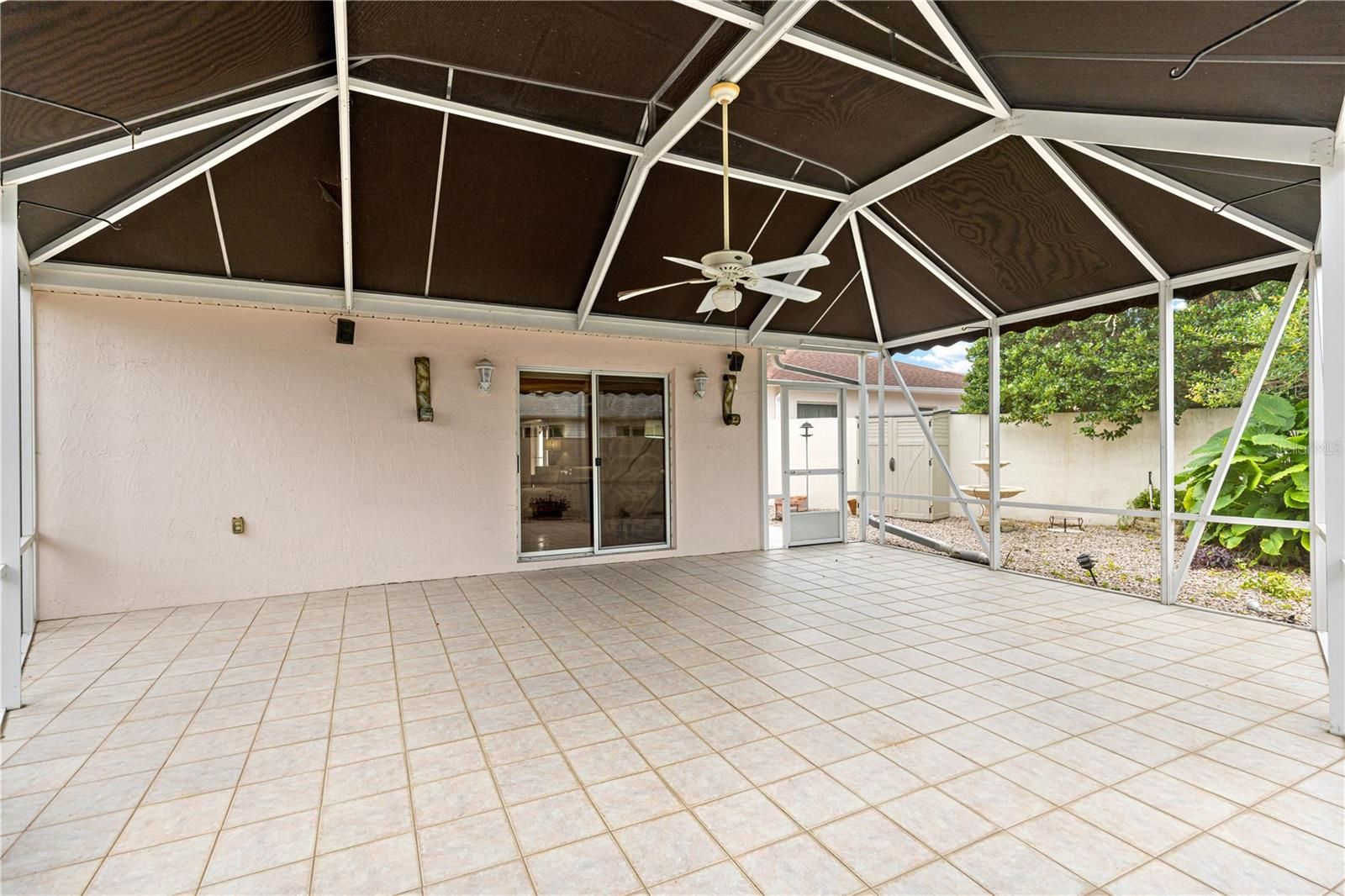 ONE-OF-A-KIND VILLA – BOND PAID! Located in the Village of Rio Grande, this 2-bedroom, 2-bath courtyard villa offers exceptional flexibility for working from home, pursuing hobbies, or simply enjoying expanded outdoor living space. Part of the garage has been professionally converted into a beautiful air-conditioned OFFICE featuring custom built-ins, desks, closets, INSIDE LAUNDRY, and a matching refrigerator—ideal for today’s lifestyle needs. Inside, you’ll find vaulted ceilings, Solar tubes, window treatments, a granite kitchen with updated cabinetry and pull-outs, CONTINUOUS 18” TILE flooring, and new luxury vinyl plank (LVP)in the hallway and bedrooms. The dining area opens to a COVERED OVERSIZED AWNING —perfect as a library or reading space—leads directly to an expansive, TILED, and very private COVERED LANAI. Additional enhancements include: • Solar panels (last electric bill approx. $38) • Whole-house generator • Plantation shutters • Designer fans • New side gate • Giant covered lanai • Granite & stainless-steel appliances • Oversized living space • Inside laundry • Vintage Cadillac-style replica golf cart with newer batteries This home is ideally positioned just a quick walk to the De La Mesa private community park and pool, featuring a walking trail, saltwater heated pool, and bath facilities. It’s also located a short walk or ride to Spanish Springs, and a little over 2 miles from Lake Sumter Landing, with easy access to recreation centers, medical, shopping, and a wide array of dining options. A home that truly captures the feel of Florida living. Schedule your private showing today.