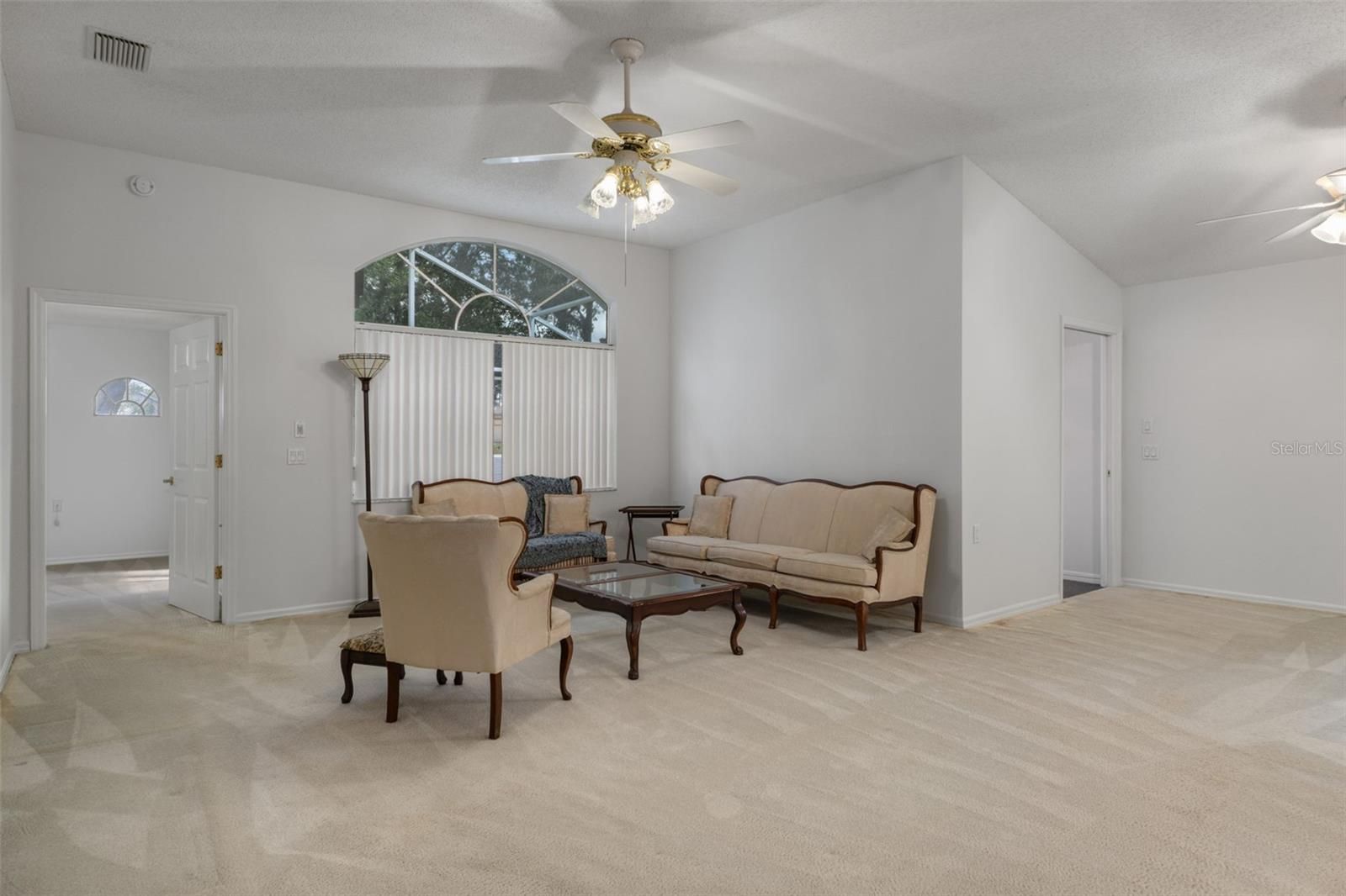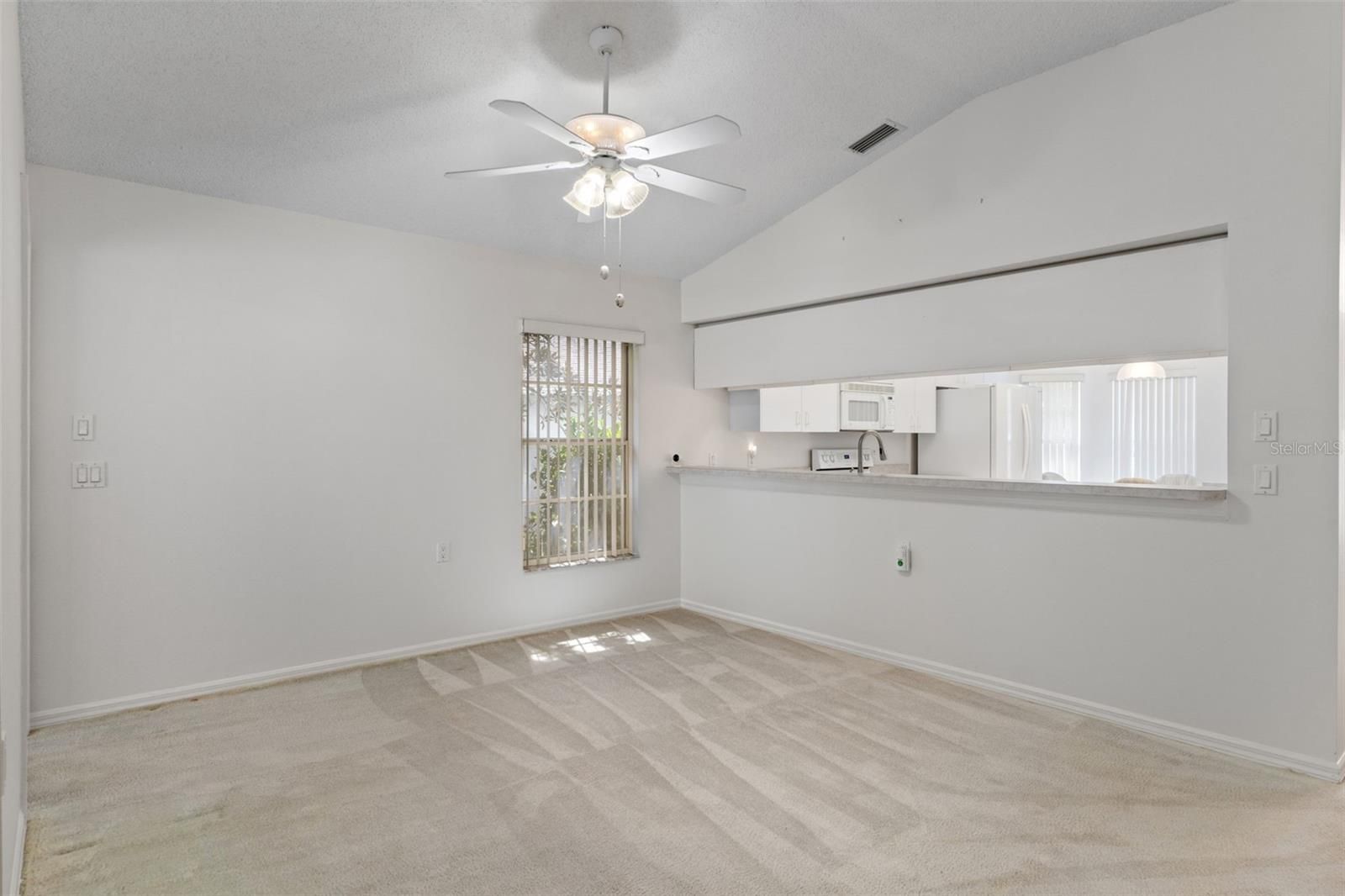 - Ceiling Fan(s), Eat-in Kitchen, High Ceilings, Living/Dining Room, Main Level Primary, Vaulted Ceiling(s), Walk-In Closet(s), Window Treatments