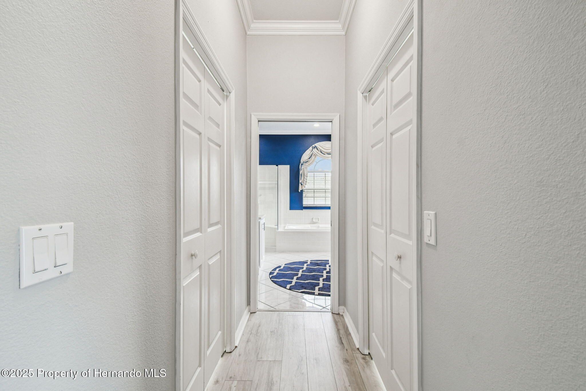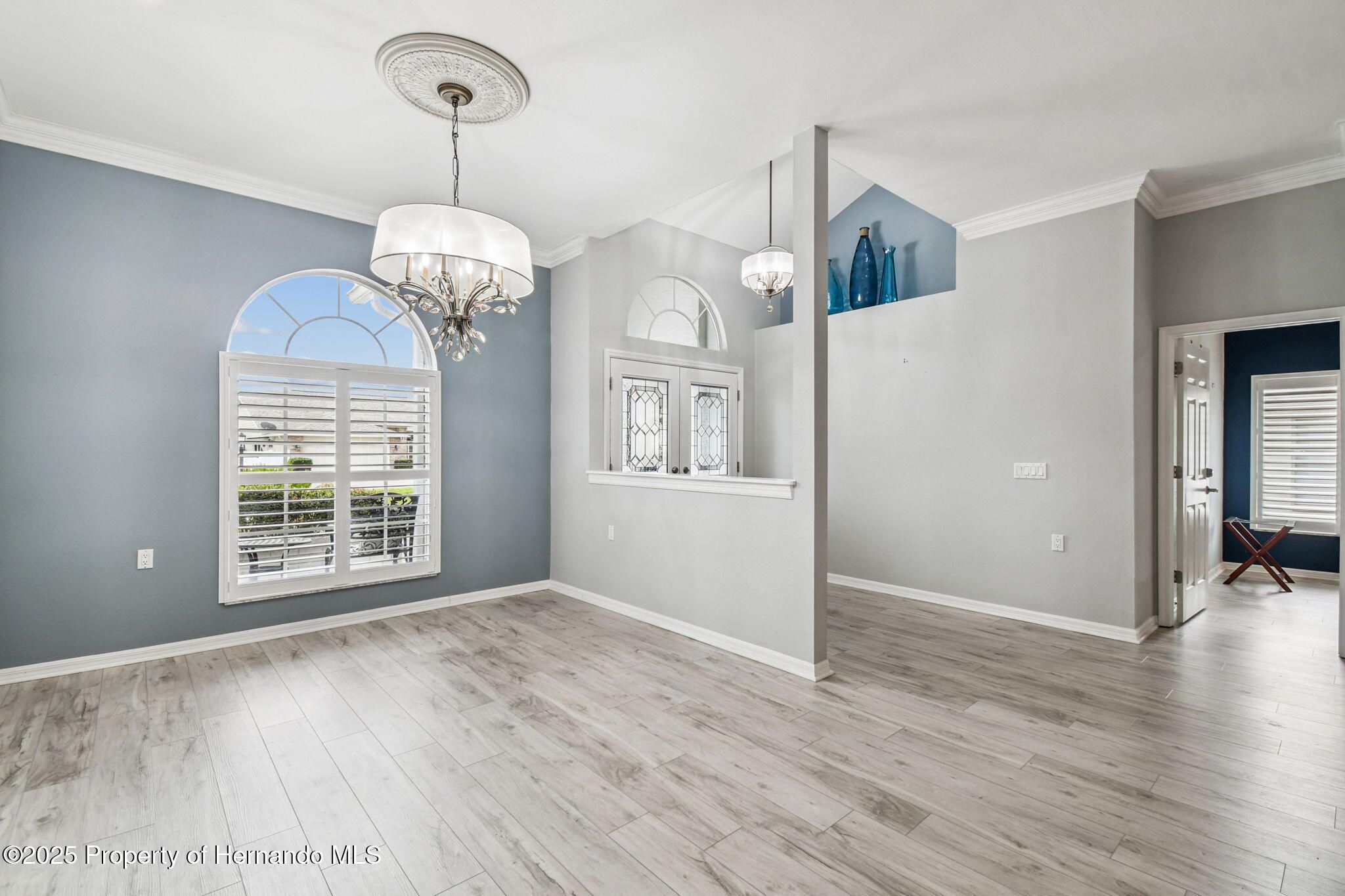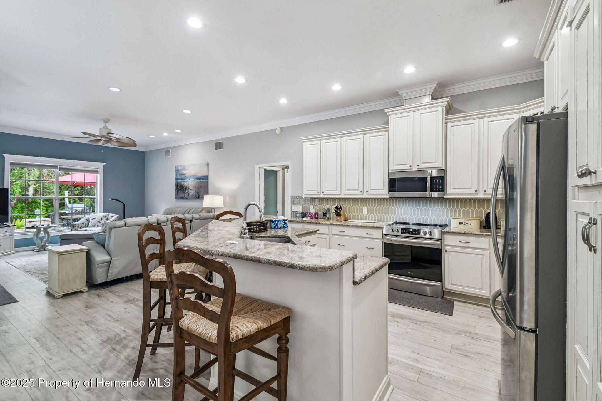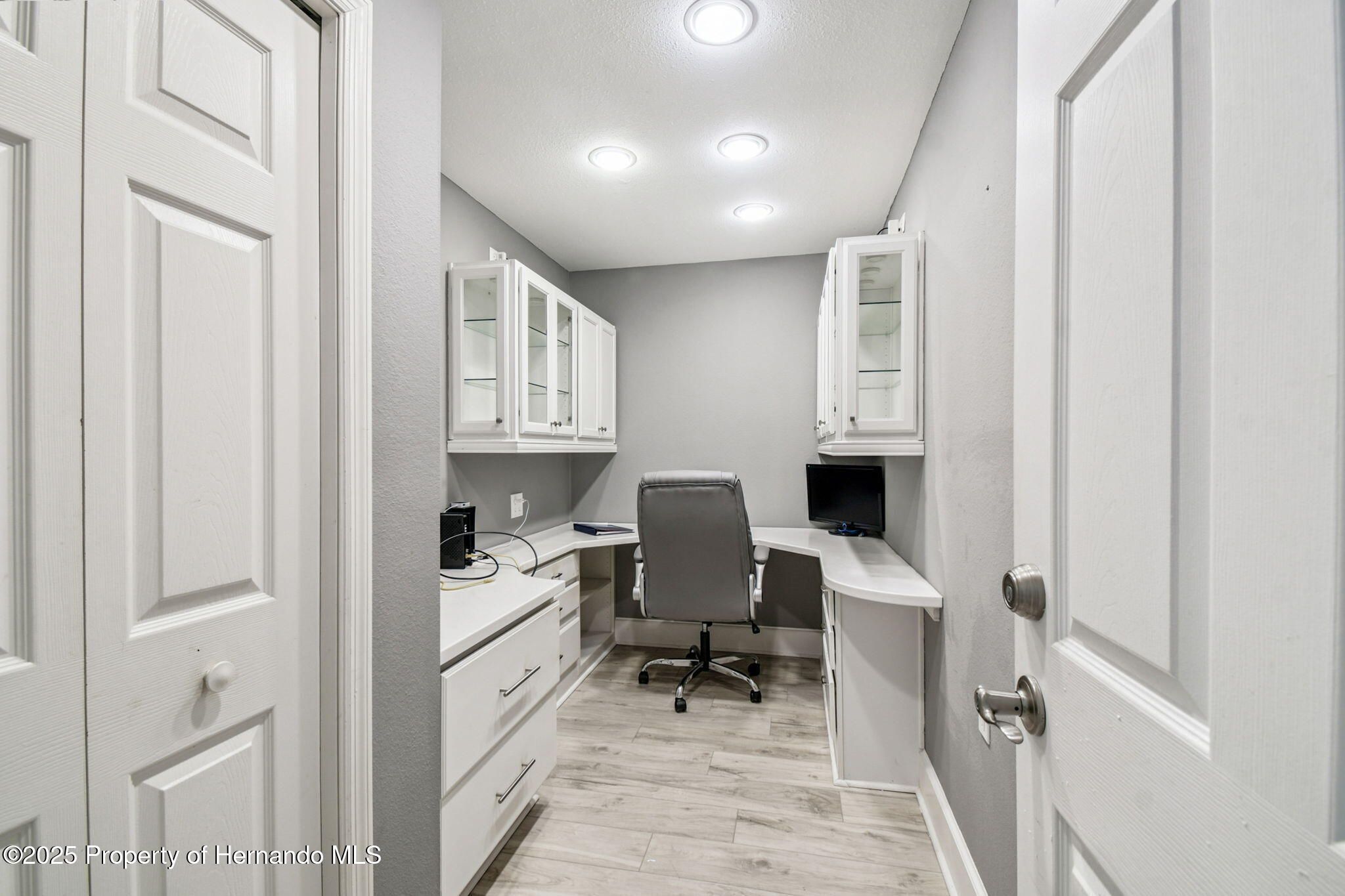Active Under Contract. Welcome to Timber Pines, an award-winning, exclusive 55+ gated community. This GORGEOUS remodeled Kent III is TURN KEY. Upon entry, you'll be greeted by an open floor plan featuring a combined dining and living area with all new luxury vinyl floors and newly painted interior. This meticulously maintained three-bedroom, two and half bath is nestled among all new landscaping (volt lighting), sod and a new front palm tree. The space flows seamlessly into the Florida Room, offering scenic views of the private rear yard and lush greenery and a beautiful 1100 sq ft. covered Lanai, pool (spa) and half bath. The centrally located kitchen is bright and functional, with a separate pantry closet and ample storage in both newly painted upper and lower cabinets and back splash. Adjacent to the kitchen is a beautiful office with built in cabinets and desk with an additional pantry for your convenience. The generously sized primary suite overlooks the Lanai, pool and rear yard through tinted sliding glass doors, filling the space with natural light. The ensuite bath has a spacious shower, large garden tub, double sinks and bidet, and also an impressive double large walk-in closet completes the suite. The home has crown molding throughout, newer ceiling fans in spare rooms along with their own TV's. This home is being offered furnished and all appliances. Golf cart sold separately. Additional recent updates include; whole house water filtration system w/ UV light, softer, UV light in a maintained HVAC system with newly cleaned and sanitized vents, new can lights throughout home, new lighting fixtures, spa has been renovated and new tile, heater, plumbing. Interior and exterior have been painted with top-of-the-line Aura paint. Invisible fence with 2 collars. The roof has a life time transferable warranty. The three car garage area includes shelving, cabinets, floored attic which is ideal for seasonal decor and other essentials. Timber Pines offers an exceptional array of amenities: four golf courses, a country club, a newly remodeled restaurant and bar with multiple TV screens, two inviting pools, a fitness center, tennis and pickleball courts, bocce ball, a billiards room, and over 100 diverse clubs. HOA fees include Spectrum Cable with two boxes and high-speed internet, adding convenience to everyday living. Don't miss this opportunity to own a meticulously maintained and beautifully updated home with a private Lot in Timber Pines!!