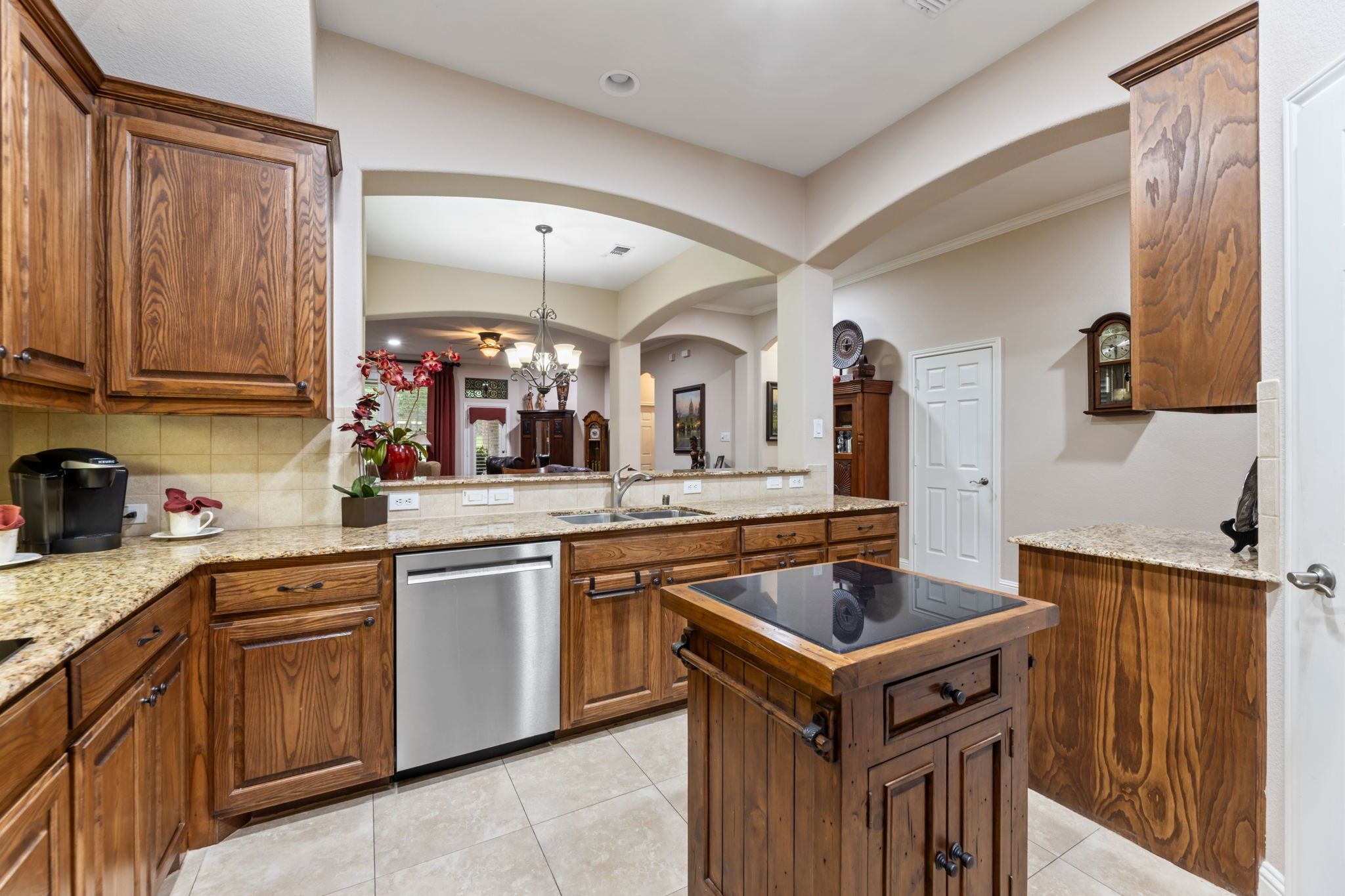 - Built-in Features, Chandelier, Decorative/Designer Lighting Fixtures, Double Vanity, Granite Counters, High Speed Internet, Kitchen Island, Open Floorplan, Pantry, Cable TV, Natural Woodwork, Walk-In Closet(s)