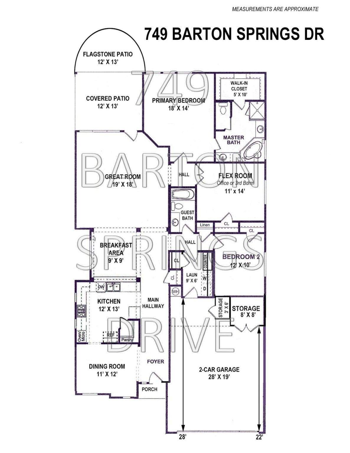 WOW!, IMPRESSIVE K. HOVNANIAN 2 or 3 BEDROOM HOME, DEEP LOT IN PARK-LIKE SETTING, MANICURED LANDSCAPING. EXTENDED GARAGE 28' DEEP WITH STORAGE, EXTENSIVE WOOD FLOORS. --- HOME FEATURES: 8' Mahogany Front Door, Plantation Shutters Throughout, Crown Molding, Flex Room with Closet, Formal Dining, Spacious Great Room-No Fireplace, 10' Ceilings, 6 inch Baseboards. Granite Countertop in Guest Bath. Additional Storage Rooms in Garage. Flooring: Wood, 18 in. Tile & carpet. GOURMET KITCHEN: Granite Countertops with Under Cabinet Windows, Double Oven-Top is Convection, KitchenAid DW, Under Cabinet Lighting, Double & Single Pull-out Drawers, Under-mount Sink, WIP, Island can stay, Refrigerator negotiable, BK Nook. ELEGANT & SPACIOUS PRIMARY SUITE: Separate Vanities, Expansive WIC, Separate Shower. SYSTEMS: HVAC (2019), WH (2025), Roof (2021), Radiant Barrier. Extended Patio & Landscaping. ----- NOTE: RETAINING WALLS are owned & the responsibility of the properties above. 749 BARTON SPRINGS is not responsible for the retaining wall---- LIVE IN HERITAGE RANCH: PREMIER GATED RESORT STYLE AMENITIES FOR THOSE OF US 50+: Scenic & Friendly Community, Indoor & Outdoor Pools, Fitness Center, 2 Restaurants, Ballroom, Dance Floor, Pickle Ball & Tennis Courts, Championship Golf Course, Hike & Bike Trails, Bocce Ball, Myriad of Groups, Clubs & Events.