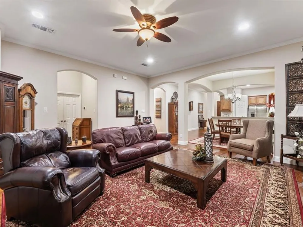 OPEN HOUSE 2-4 PM SUNDAY SEPT 28 ---- WOW!, IMPRESSIVE K. HOVNANIAN 2 or 3 BEDROOM HOME, DEEP LOT IN PARK-LIKE SETTING, MANICURED LANDSCAPING. EXTENDED GARAGE 28' DEEP WITH STORAGE, EXTENSIVE WOOD FLOORS. --- HOME FEATURES: 8' Mahogany Front Door, Plantation Shutters Throughout, Crown Molding, Flex Room with Closet, Formal Dining, Spacious Great Room-No Fireplace, 10' Ceilings, 6 inch Baseboards. Granite Countertop in Guest Bath. Additional Storage Rooms in Garage. Flooring: Wood, 18 in. Tile & carpet. GOURMET KITCHEN: Granite Countertops with Under Cabinet Windows, Double Oven-Top is Convection, KitchenAid DW, Under Cabinet Lighting, Double & Single Pull-out Drawers, Under-mount Sink, WIP, Island can stay, Refrigerator negotiable, BK Nook. ELEGANT & SPACIOUS PRIMARY SUITE: Separate Vanities, Expansive WIC, Separate Shower. SYSTEMS: HVAC (2019), WH (2025), Roof (2021), Radiant Barrier. Extended Patio & Landscaping. ----- NOTE: RETAINING WALLS are owned & the responsibility of the properties above. 749 BARTON SPRINGS is not responsible for the retaining wall---- LIVE IN HERITAGE RANCH: PREMIER GATED RESORT STYLE AMENITIES FOR THOSE OF US 50+: Scenic & Friendly Community, Indoor & Outdoor Pools, Fitness Center, 2 Restaurants, Ballroom, Dance Floor, Pickle Ball & Tennis Courts, Championship Golf Course, Hike & Bike Trails, Bocce Ball, Myriad of Groups, Clubs & Events.