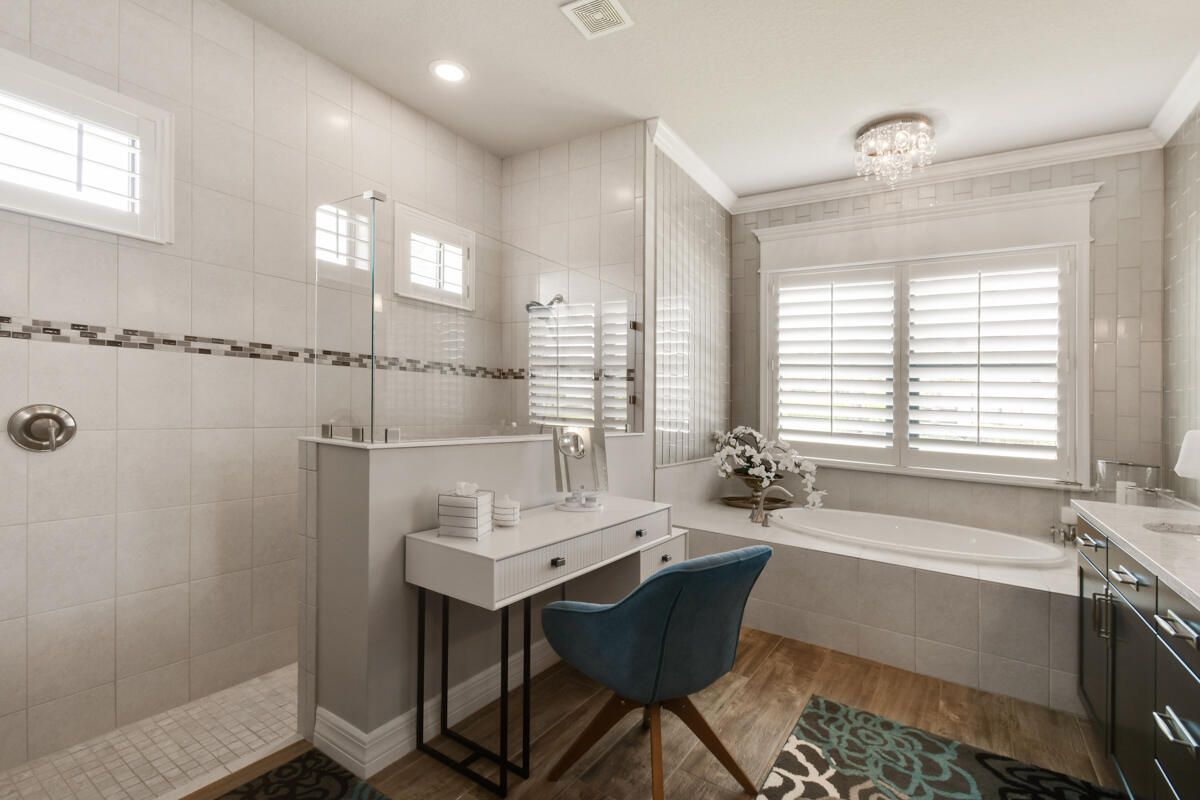 - Closet Cabinetry, Cathedral Ceiling(s), Custom Mirrors, Entry Level Living Area, Fireplace, Entrance Foyer, French Door(s)/Atrium Door(s), Kitchen Island, Pantry, Garden Tub/Roman Tub, Split Bedrooms, High Ceilings, Walk-In Closet(s), Home Office, Great Room, Living/Dining Room, Kitchen/Dining Combo, Window Casement, Drapes, Storm Window(s), Impact Glass, Single Hung Metal Window(s), Sliding Window(s), Dual Sinks, Primary Downstairs, Sitting Area In Primary Bedroom, Separate Shower, Bathtub