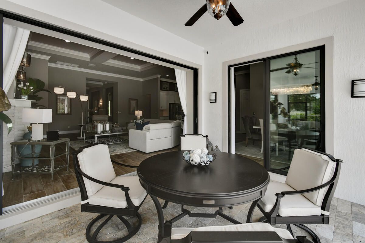 Elegance and thoughtful design come together in this exceptional residence located in the prestigious gated community of Copperleaf. Positioned on a beautifully landscaped 0.4-acre lakefront lot, this 4-bedroom, 3-bath Clubview model offers 3,089 square feet of sophisticated living space and a rare 3-car air-conditioned garage. The home's interiors are defined by timeless finishes and curated details: coffered ceilings, crown molding, wood accent walls, stone features, and plantation shutters. The expansive great room flows seamlessly into a gourmet kitchen outfitted with KitchenAid and LG appliances, custom cabinetry, a glass tile backsplash, and an oversized island ideal for gathering. Designed for elevated everyday living, the split-bedroom floor plan ensures privacy when needed, but