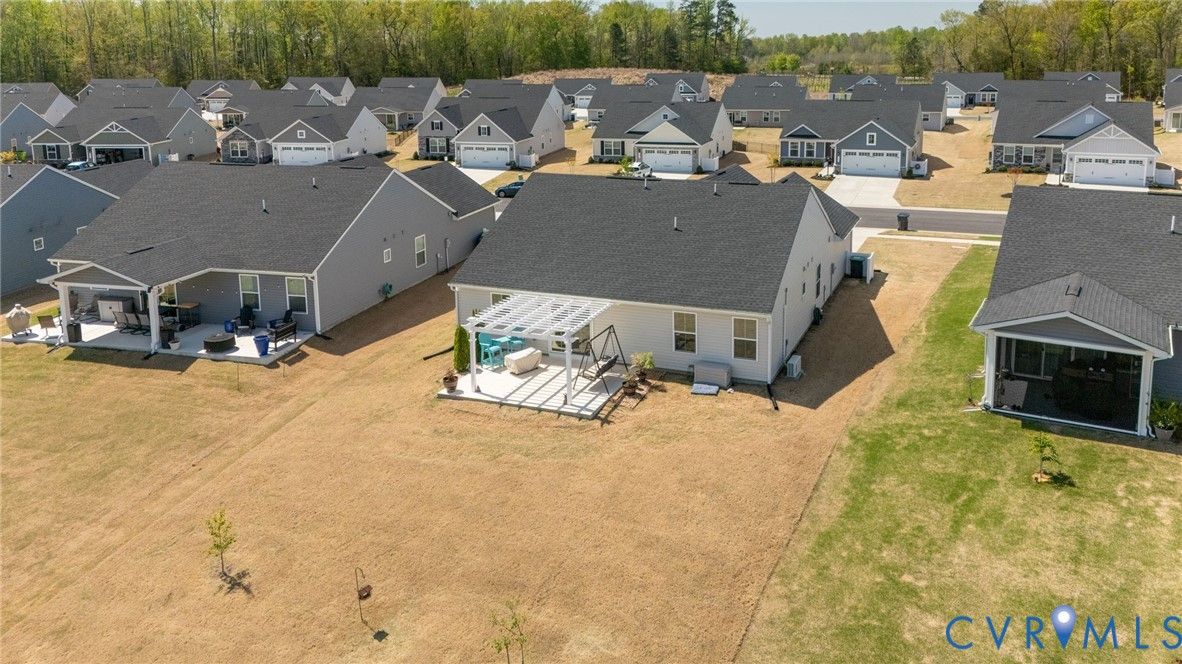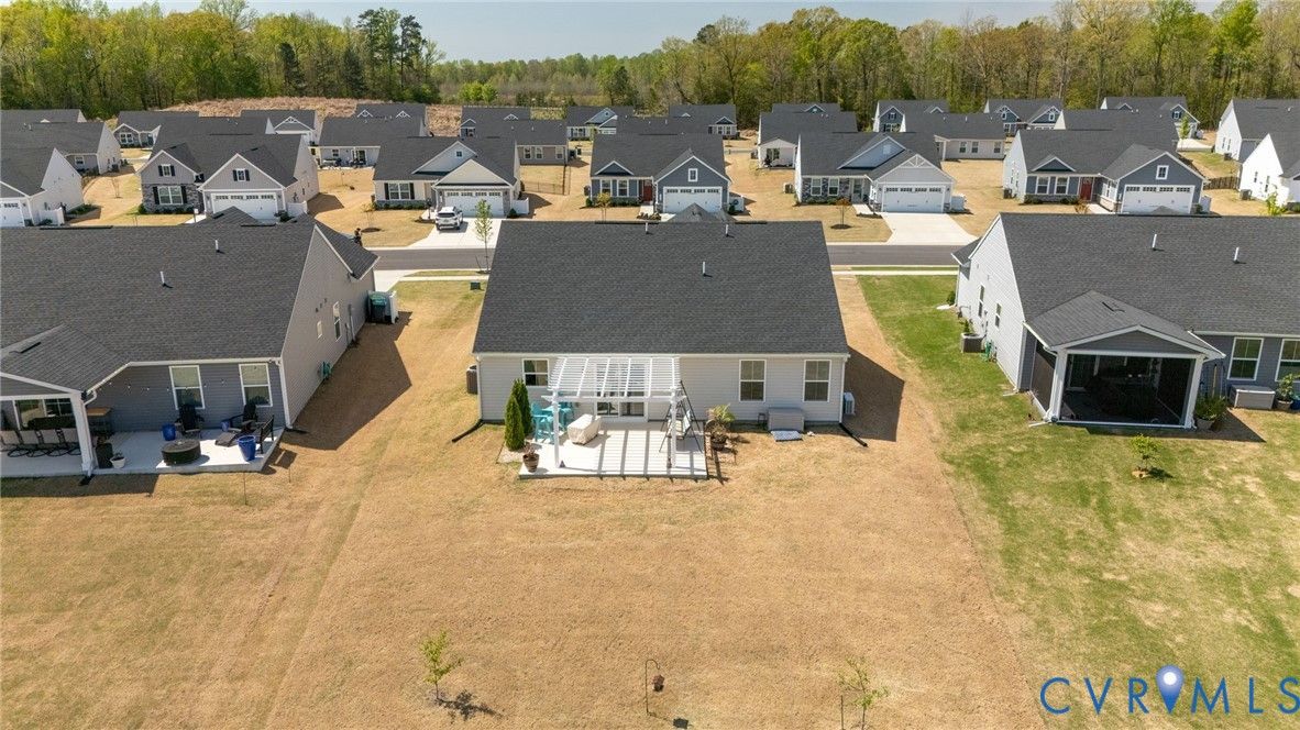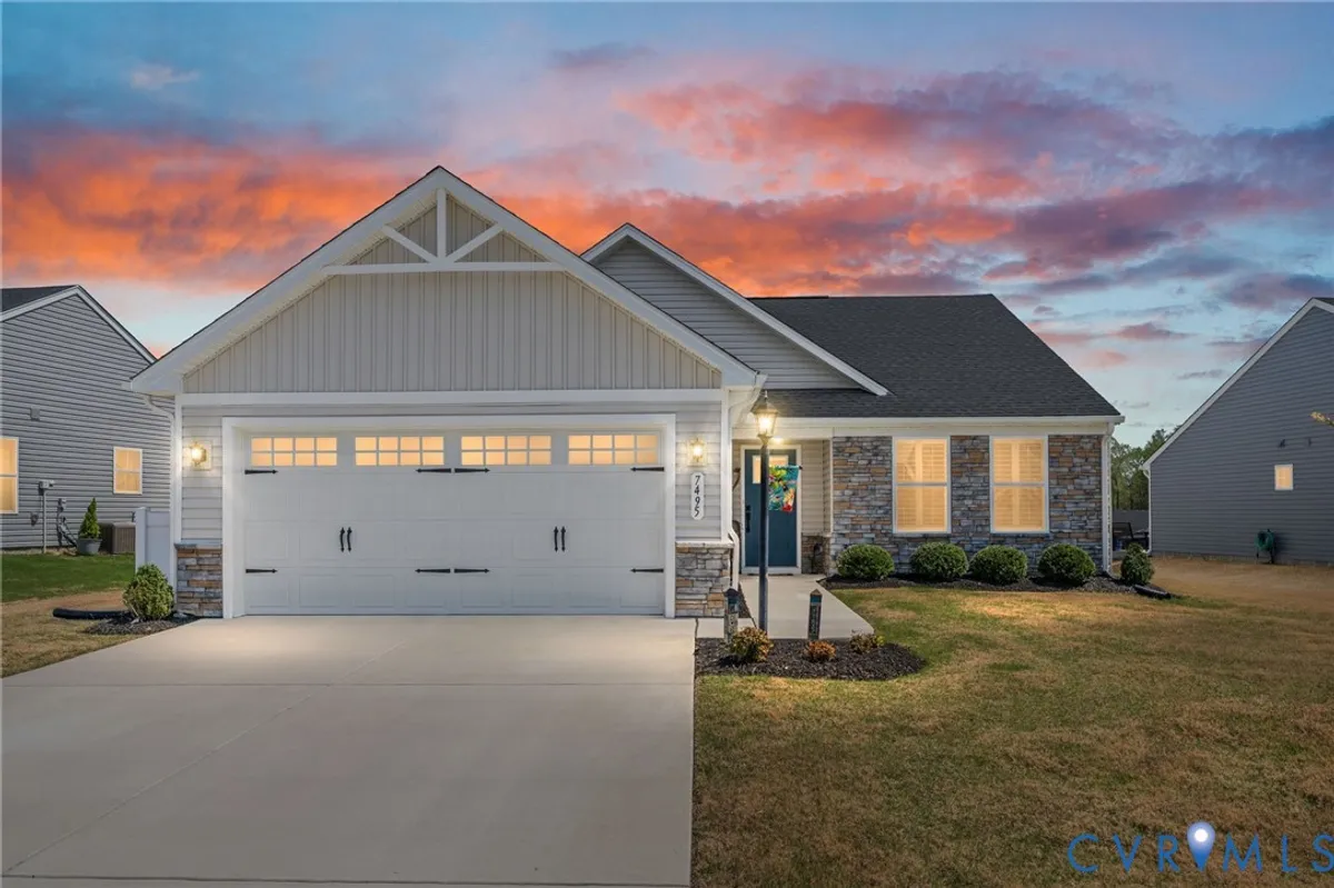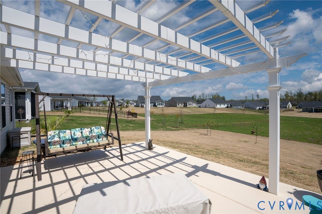 Welcome to 7495 Southamptonshire Way — a delightful three-bedroom, two-bathroom home nestled in the sought-after Groves of New Kent community. This 1,532-square-foot residence, built just three years ago, offers move-in ready living without the hassle of waiting on new construction. The open-concept design draws you in from the moment you enter. The kitchen showcases beautiful quartz countertops, upgraded cabinetry, and a functional pantry. Living and dining areas connect effortlessly, creating an ideal space for everyday routines and entertaining. The generous primary suite provides a true retreat with an en-suite bathroom and spacious closet, while two additional bedrooms and a full guest bath complete the thoughtful floor plan. Outside, a private rear patio with a pergola overlooks peaceful open green space. Where this home truly shines is the resort-style community that surrounds it. Imagine starting your morning with a workout in one of the state-of-the-art fitness centers, then cooling off in the sparkling swimming pools or floating down the lazy river on a warm afternoon. Two beautifully appointed clubhouses serve as social hubs for gatherings, events, and an active calendar that keeps residents connected. Pickleball courts deliver friendly competition, while a dedicated dog park ensures your four-legged companions enjoy the lifestyle too. Every day feels like a vacation without ever leaving the neighborhood. Convenience rounds out the package — situated just off I-64, Richmond is roughly 20 minutes away and Williamsburg only 30. Lawn maintenance is included in the HOA for ultimate lock and-leave living.