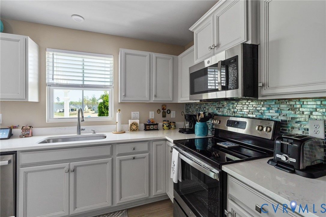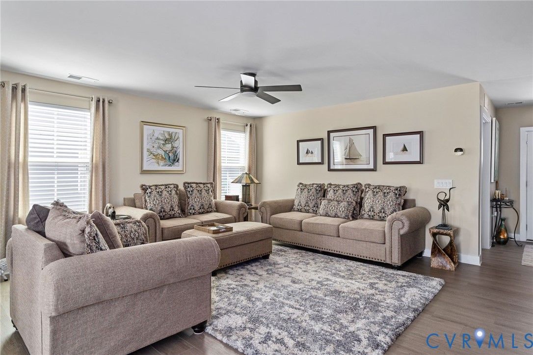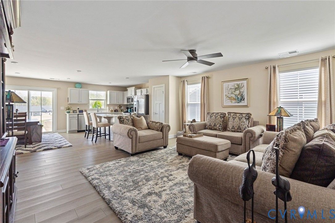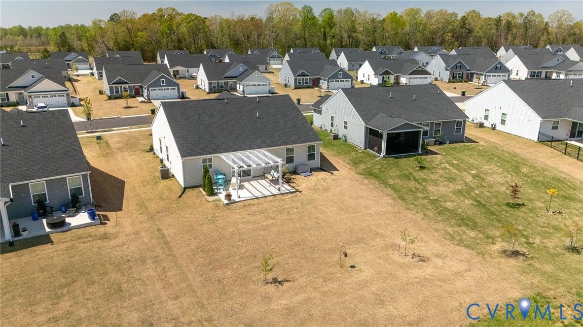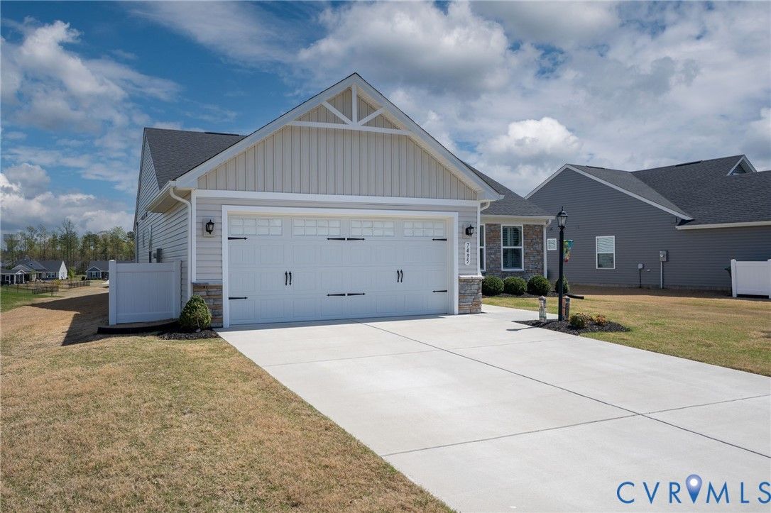 Welcome to 7495 Southamptonshire Way — a delightful three-bedroom, two-bathroom home nestled in the sought-after Groves of New Kent community. This 1,532-square-foot residence, built just three years ago, offers move-in ready living without the hassle of waiting on new construction. The open-concept design draws you in from the moment you enter. The kitchen showcases beautiful quartz countertops, upgraded cabinetry, and a functional pantry. Living and dining areas connect effortlessly, creating an ideal space for everyday routines and entertaining. The generous primary suite provides a true retreat with an en-suite bathroom and spacious closet, while two additional bedrooms and a full guest bath complete the thoughtful floor plan. Outside, a private rear patio with a pergola overlooks peaceful open green space. Where this home truly shines is the resort-style community that surrounds it. Imagine starting your morning with a workout in one of the state-of-the-art fitness centers, then cooling off in the sparkling swimming pools or floating down the lazy river on a warm afternoon. Two beautifully appointed clubhouses serve as social hubs for gatherings, events, and an active calendar that keeps residents connected. Pickleball courts deliver friendly competition, while a dedicated dog park ensures your four-legged companions enjoy the lifestyle too. Every day feels like a vacation without ever leaving the neighborhood. Convenience rounds out the package — situated just off I-64, Richmond is roughly 20 minutes away and Williamsburg only 30. Lawn maintenance is included in the HOA for ultimate lock and-leave living.