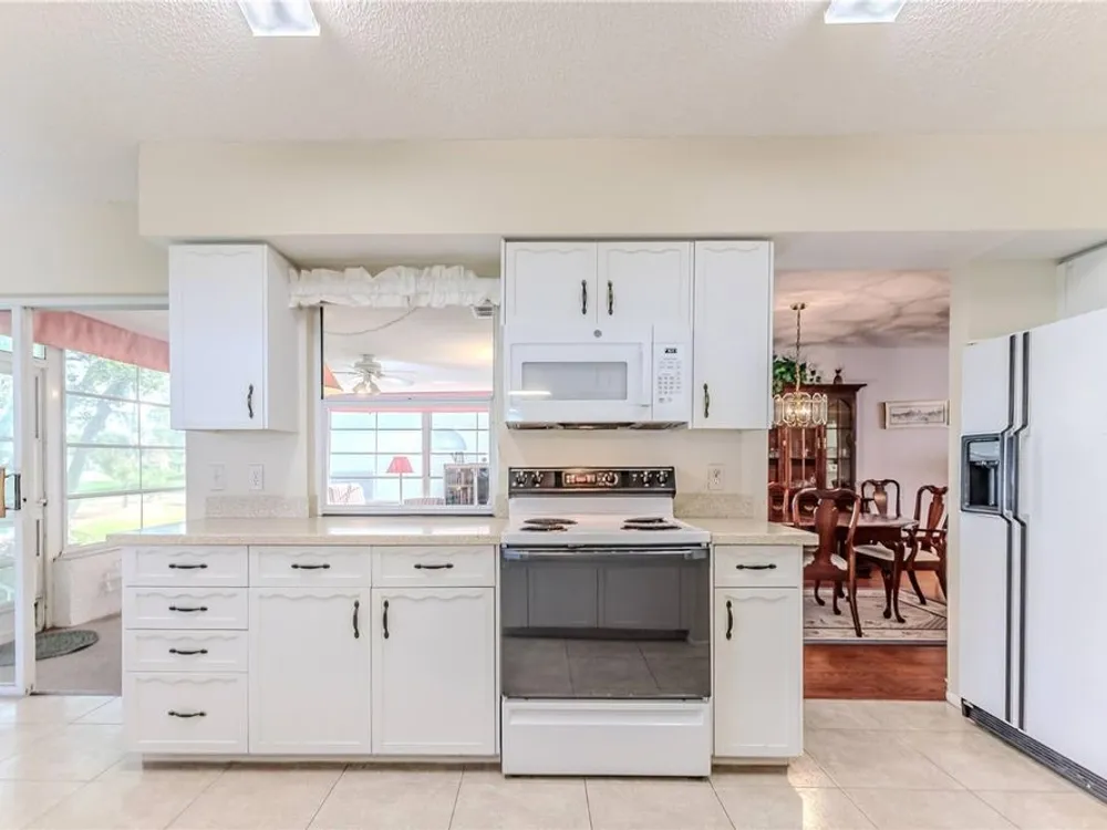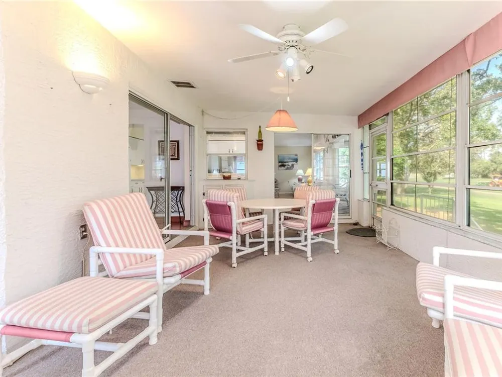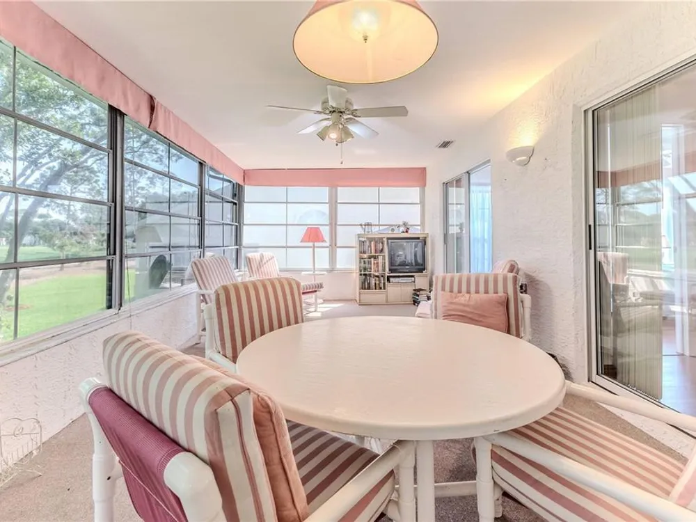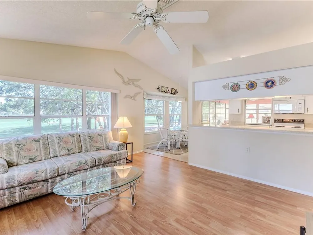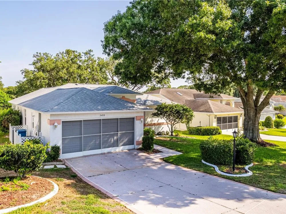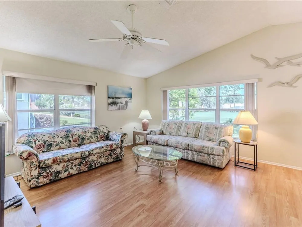 Welcome to your dream home perfectly positioned on the 10th hole of the prestigious Grand Pines Golf Course. This beautifully maintained Victoria model offers a lifestyle of comfort, elegance, and endless recreation in the heart of Timber Pines—a vibrant, 55+, guard-gated, deed-restricted community where every day feels like a vacation! Exceptional Features & Layout: Step inside this spacious 3-bedroom, 2-bath residence and immediately feel at home. The desirable split floor plan ensures privacy for both you and your guests, while the expansive 2-car garage provides ample space for vehicles and storage. •Formal Living & Dining: Entertain in style in the elegant living and dining areas, seamlessly connected to a fully enclosed lanai—perfect for year-round relaxation or lively gatherings. •Inviting Family Room: Vaulted ceilings and panoramic fairway views create a light, airy atmosphere that's both welcoming and impressive. •Gourmet Kitchen: Enjoy refaced cabinets, Corian countertops, and a bright breakfast nook—ideal for savoring your morning coffee while soaking in peaceful golf course vistas. •Primary Suite: Your personal sanctuary awaits, featuring two walk-in closets, sliding glass doors to the lanai, and a spa-like ensuite bath with dual vanities and a walk-in shower. •Spacious second and third bedrooms offer large closets and easy access to a full guest bath with a tub/shower combo—perfect for visiting friends or family. Thoughtful Updates •Roof replaced in 2019 •HVAC system installed in 2021 •Exterior painted in 2021 •Inside utility room with cabinets, sink, closet, and included washer/dryer •Mixed flooring: Carpet, tile, and laminate throughout Outdoor Oasis: Step out to your peaceful backyard retreat with sweeping golf course views—there's plenty of room to add a pool and create your own slice of paradise. Resort-Style Community Amenities: Timber Pines offers an unmatched array of activities and amenities: •Three 18-hole golf courses and a 9-hole pitch & putt •Tennis and 12 pickleball courts for friendly competition •Two sparkling pools, a country club, restaurant, fitness center, billiards, performing arts, and countless social clubs Your Florida Dream Awaits! Don't miss this opportunity to embrace the best of Florida living in a home that truly has it all—comfort, style, and an unbeatable location. Schedule your tour today and discover why Timber Pines is one of the most sought-after communities in the Sunshine State!