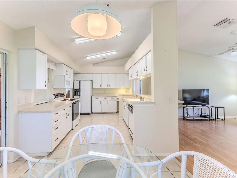 - Ceiling Fan(s), Eat-in Kitchen, Kitchen/Family Room Combo, Living/Dining Room, Main Level Primary, Split Bedrooms, Vaulted Ceiling(s), Walk-In Closet(s)