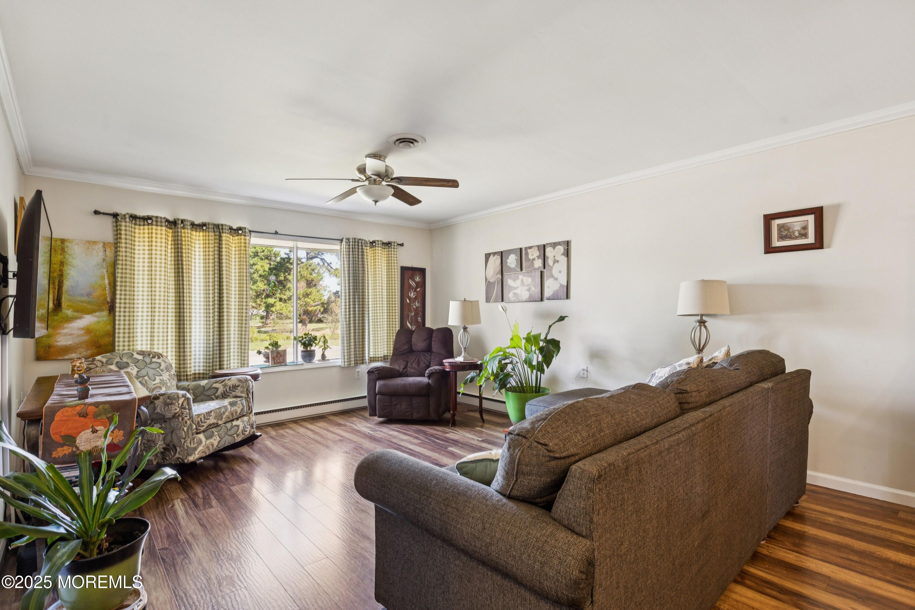 JUST REDUCED!!!!! Move in condition 2 bedroom. 2 bath home. Located in a great community with many extras ACCESS FROM FRONT AND REAR DOORS TO ROADS!!. Prime bedroom has a bathroom off of it. Eat in beautiful updated kitchen. Dining room and large living room. Central air with heat pump and air purifier only 3 years old.. Brand new HOT WATER HEATER!! Pull down stairs for attic and ceiling fans in every room.Newer windows, LARGE HEATED ROOM OFF THE BACK OF HOME CAN BE USED AS AN OFFICE OR DEN> Crown molding in Livingroom and dining room . HOA COVERS ROOF,SIDING,INFINITY CABLE AND WI FI along with maintenance. A must see home!!!!