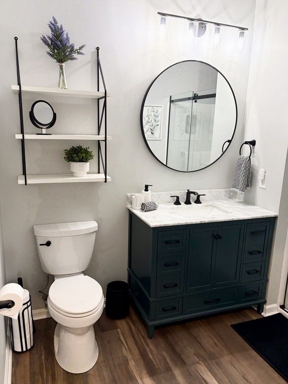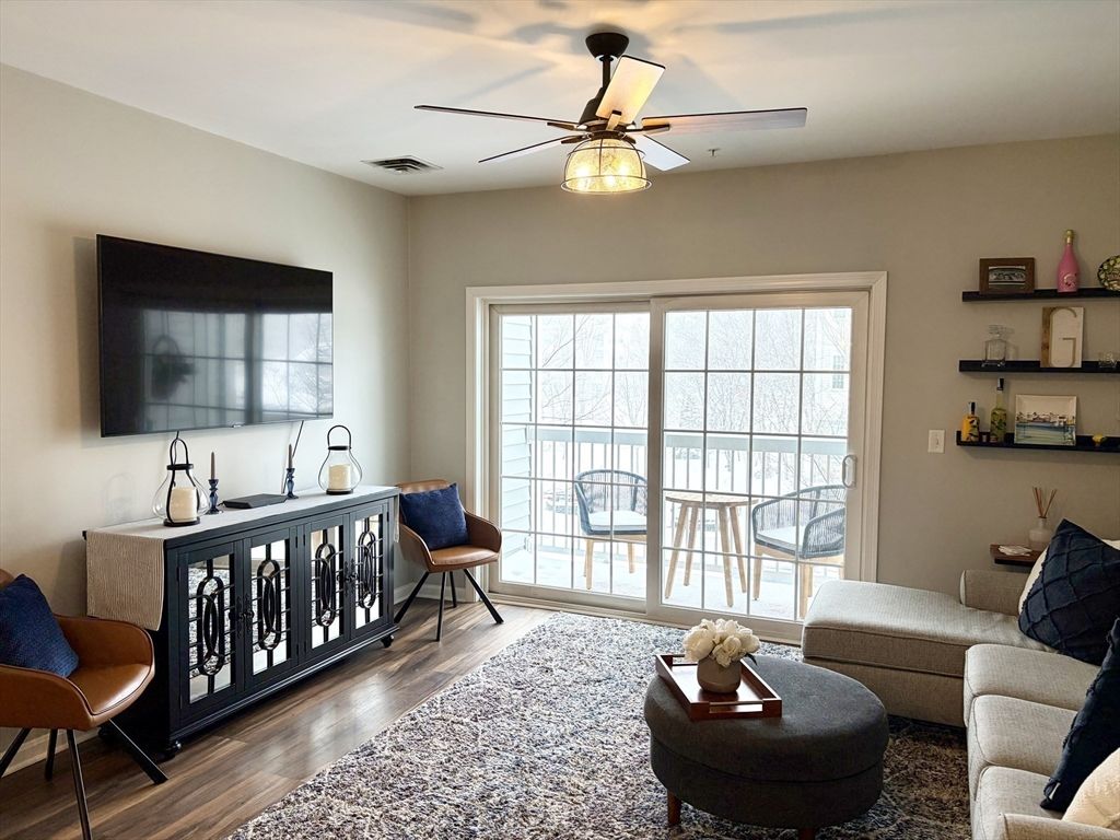 Move right into this stylishly updated 1 bedroom plus bonus room (can be used as a office/den/dining room) condo. Living room with a slider that leads out to a private balcony, bedroom with a bay window and spacious walk-in closet, in sought-after Reading Woods. Renovated in 2022, the home features lifetime vinyl flooring throughout, creating a modern cohesive feel that's both beautiful and practical. The bathroom has been tastefully updated with new flooring, vanity, and toilet, while the thoughtfully designed laundry room includes a washer and dryer (2024) along with excellent storage. Hallway paint and carpeting have been updated within the last two years, adding to the fresh well-maintained feel of the building. The exterior grounds are well maintained, walking trails, Gazebo, & the Clubhouse has an exercise room. Close to downtown Reading, commuter rail, and major routes, this condo offer easy, low maintenance living in a prime location