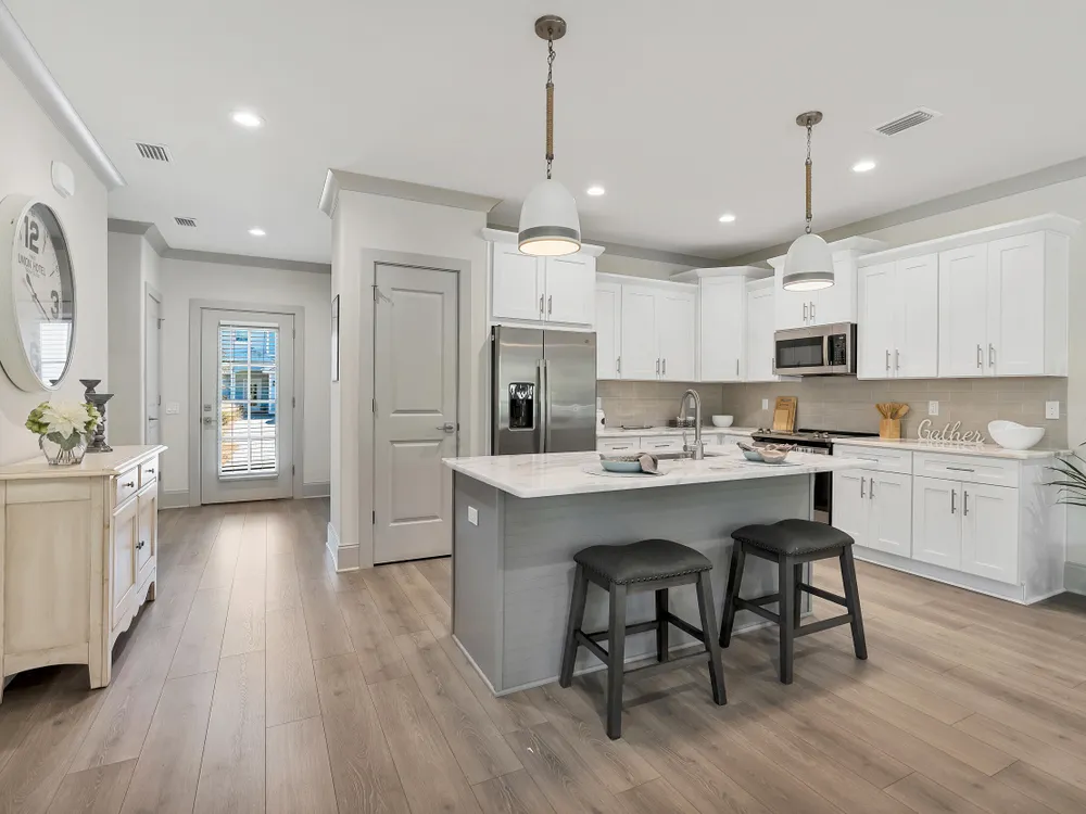 Discover Villas on the Fairway, thoughtfully designed TOWNHOMES in the highly sought-after Watersound Origins community! These stunning 2-story residences feature 3 bedrooms, 2.5 baths, and a 1-car garage, with direct access to the lively Watersound Town Center--featuring shops, restaurants, a pavilion, and abundant green space just moments away.Inside, the open-concept first floor boasts stylish LVP flooring throughout, a spacious island kitchen with Quartz countertops, a sleek glass cooktop with oven, microwave and a refrigerator. A convenient coat/storage closet and powder room add to the home's functionality and ease of living.Upstairs, the spacious owner's suite is complemented by two additional bedrooms and beautifully appointed full baths, with upgraded shelving