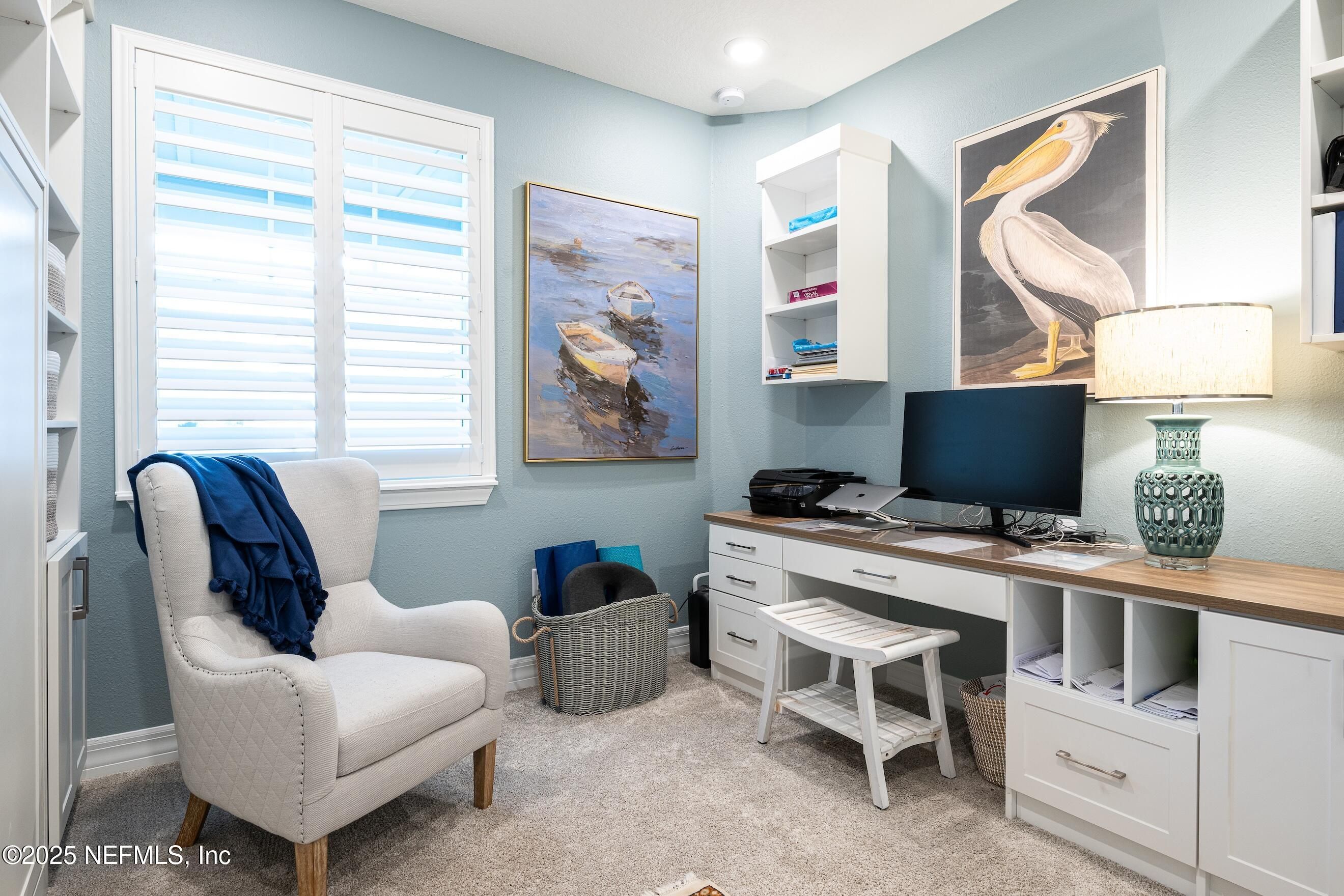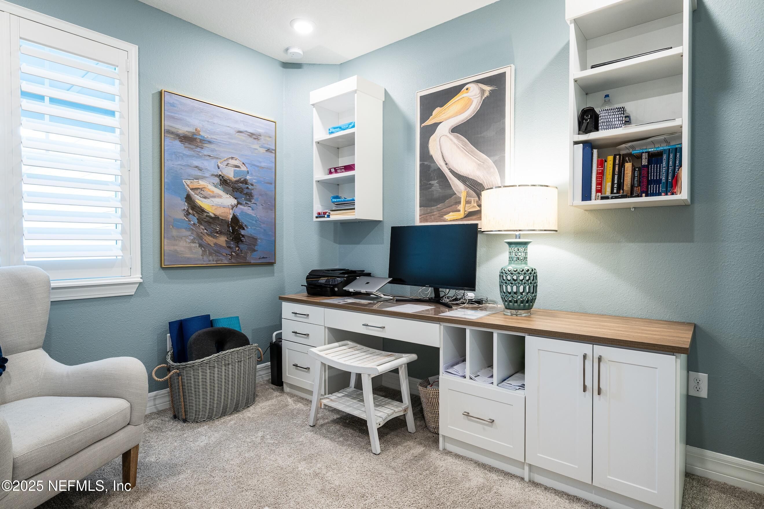 Elegant, designer home with premier custom features. Including: Built in custom hutch off kitchen, custom built in cabinetry & bookcase in Flex room, custom built-in Hide-A-Bed & desk & cabinetry in 2nd Bedroom, custom shelving in the walk-in closet in the primary bedroom closet and built in cabinets in laundry room. The home offers an extended, covered lanai with a tranqual view of the preserve. The HOA dues, for the Villa's , include lawn care and outside maintenance. This 55+ community offers a restaurant, club house, fitness room, pickleball courts, tennis courts, bocci ball courts, 2 swimming pools (one heated in the winter), large outdoor spa and numerous clubs and activities. The community is located near medical care facilities and shopping. It is only a 20 minute drive to the Ancient city of Saint Augustine.